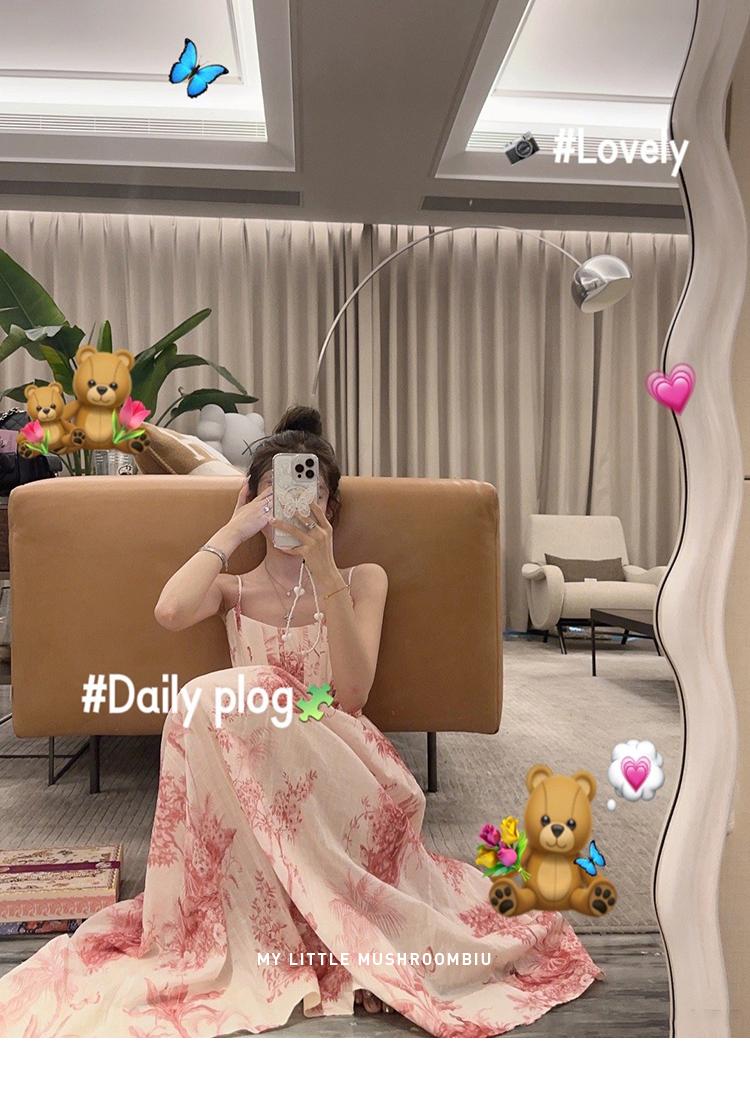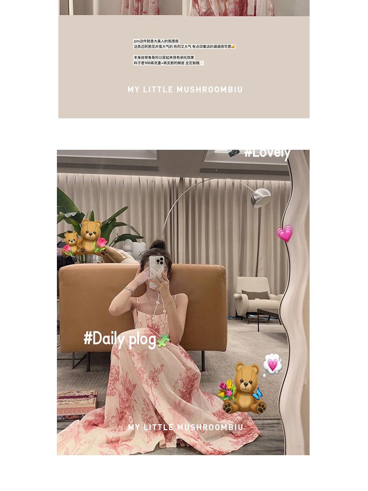 金蘑菇菇 无尽夏 大美人zim花花裙 / 氛围感温柔花卉吊带连衣裙夏