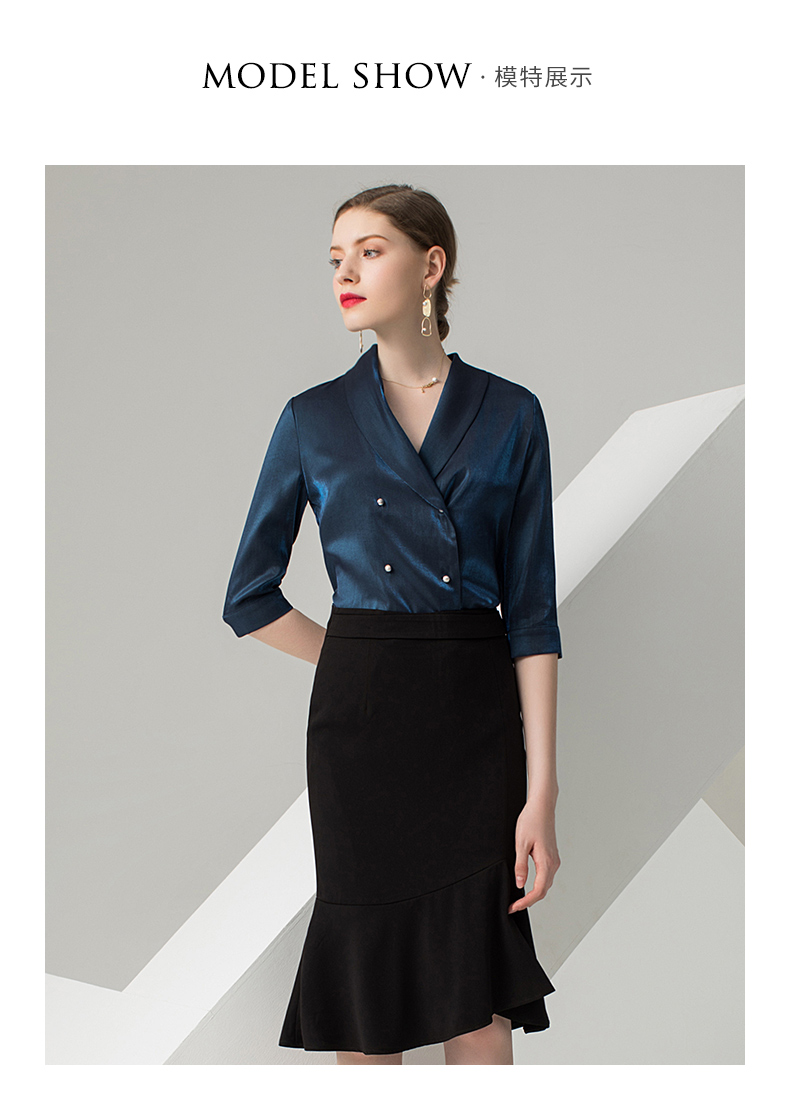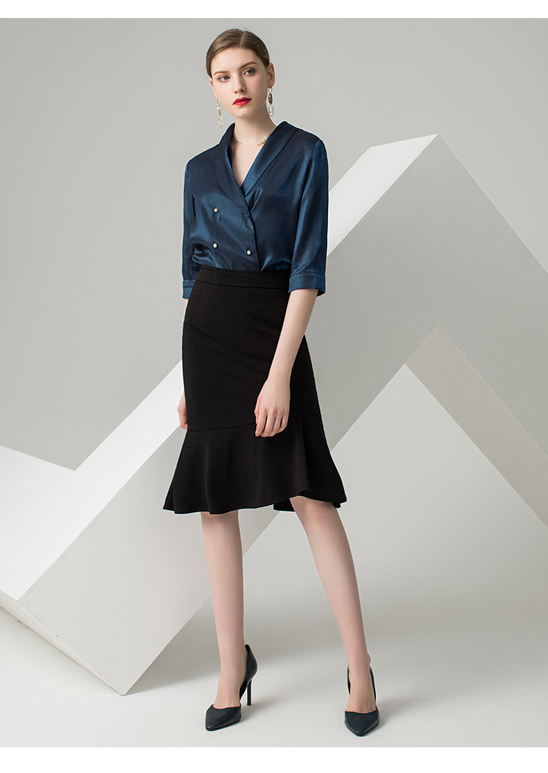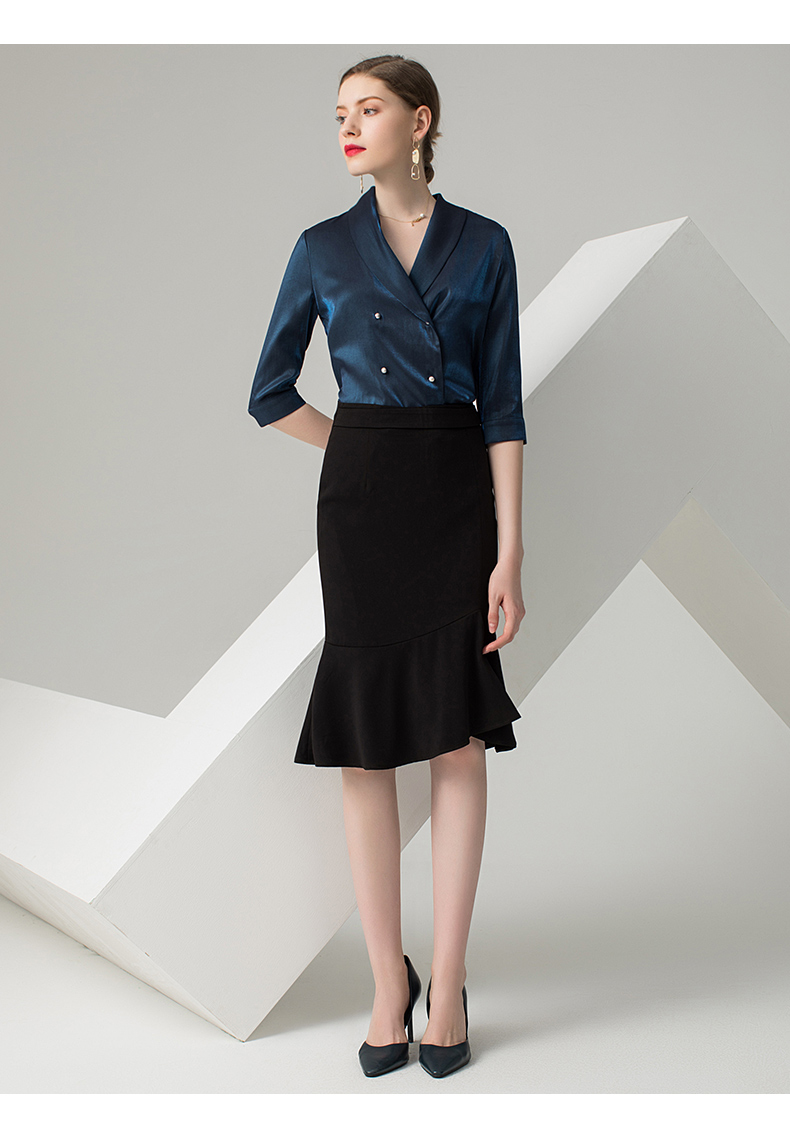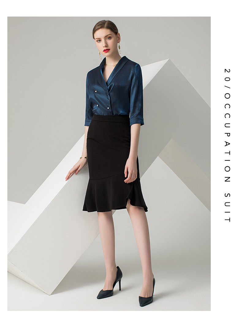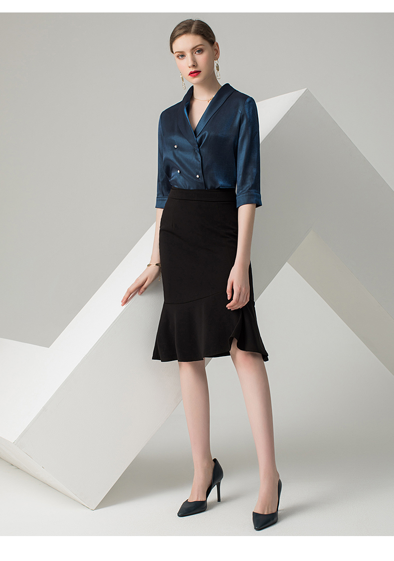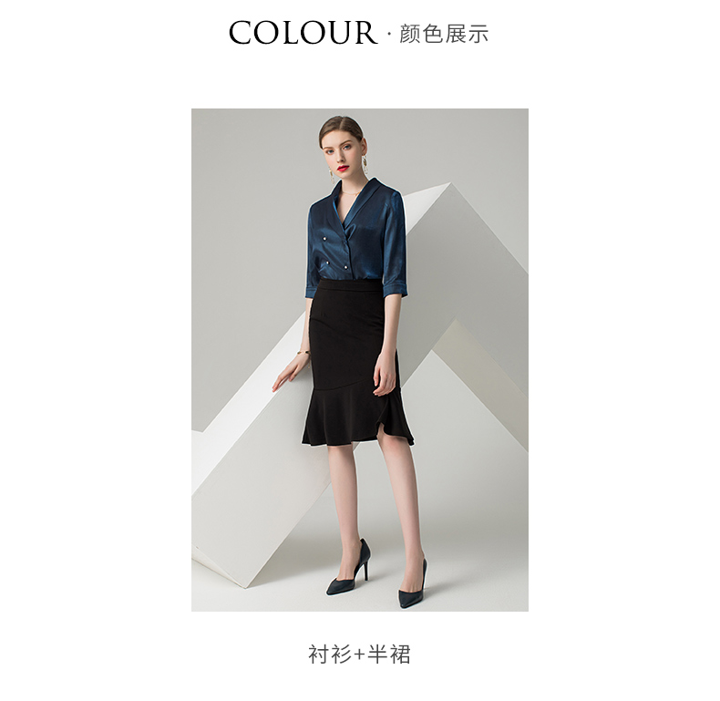 IWY/蓝色五分袖衬衫黑色半裙套装AB0288+AS0185