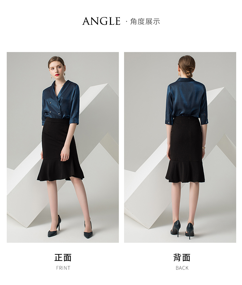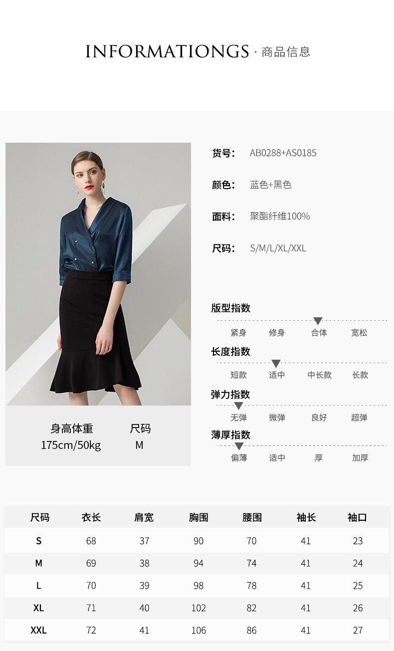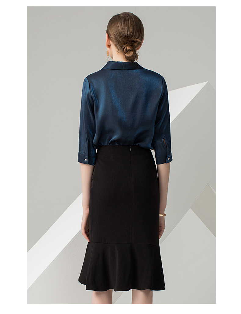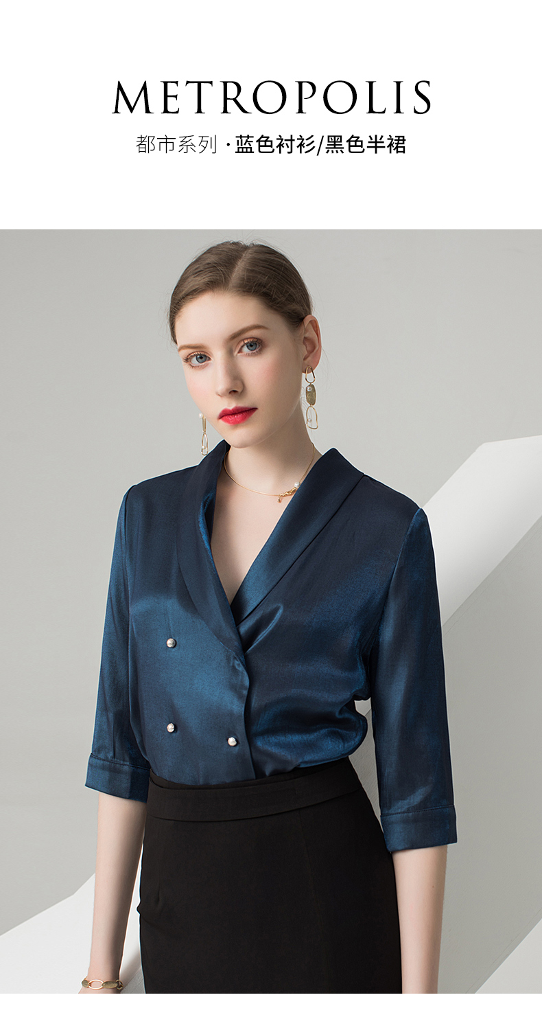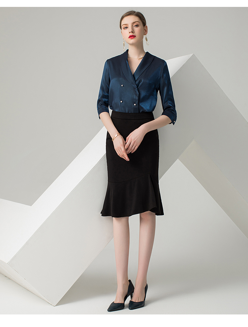 IWY/蓝色五分袖衬衫黑色半裙套装AB0288+AS0185