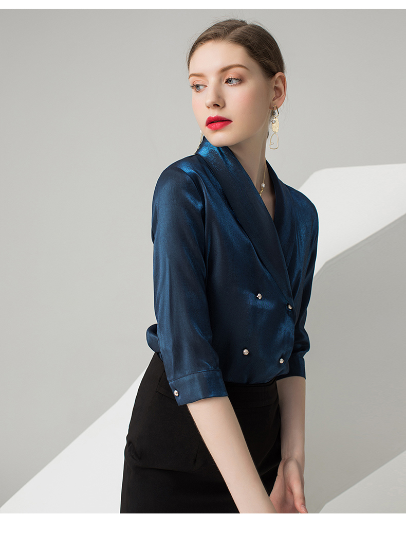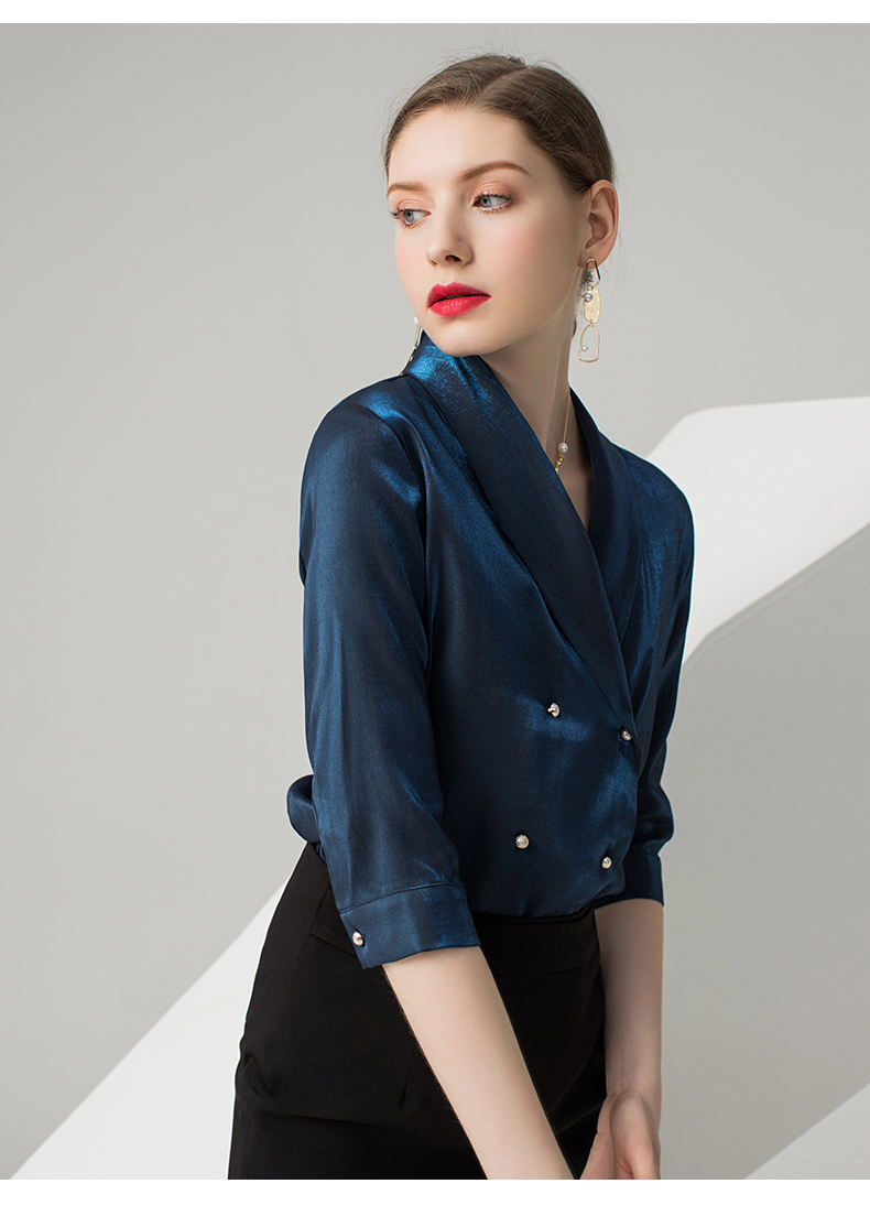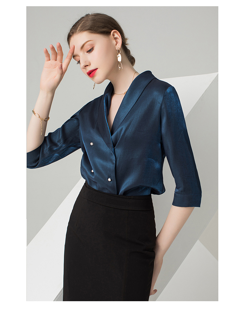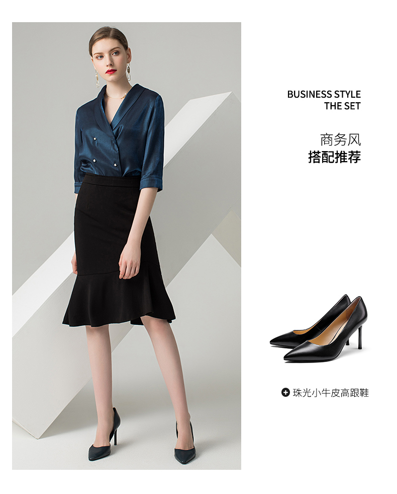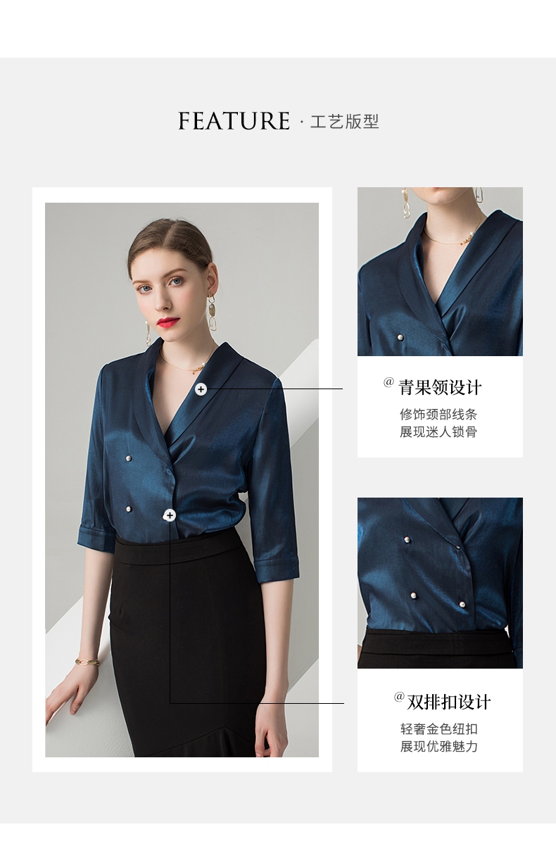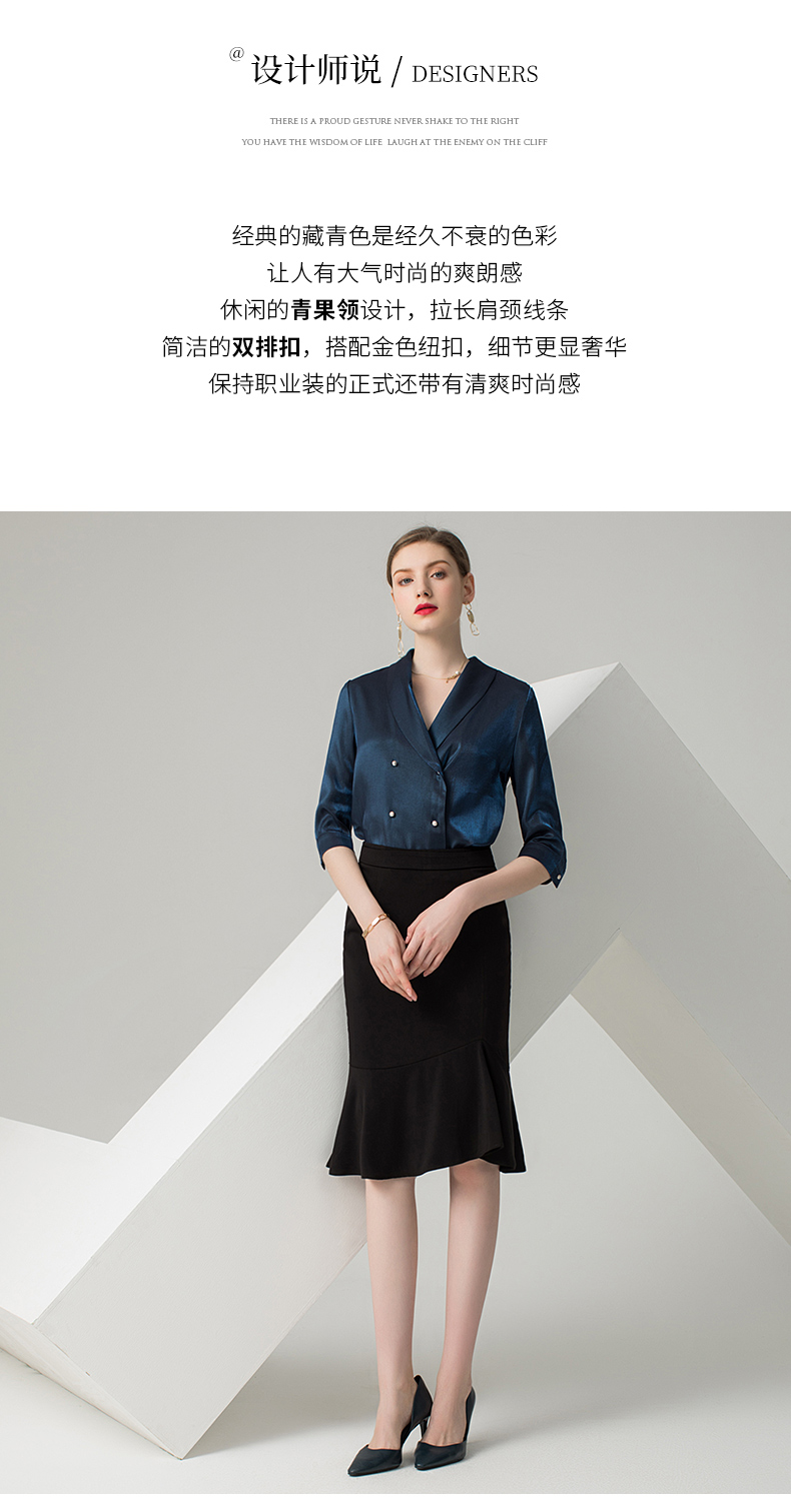 IWY/蓝色五分袖衬衫黑色半裙套装AB0288+AS0185