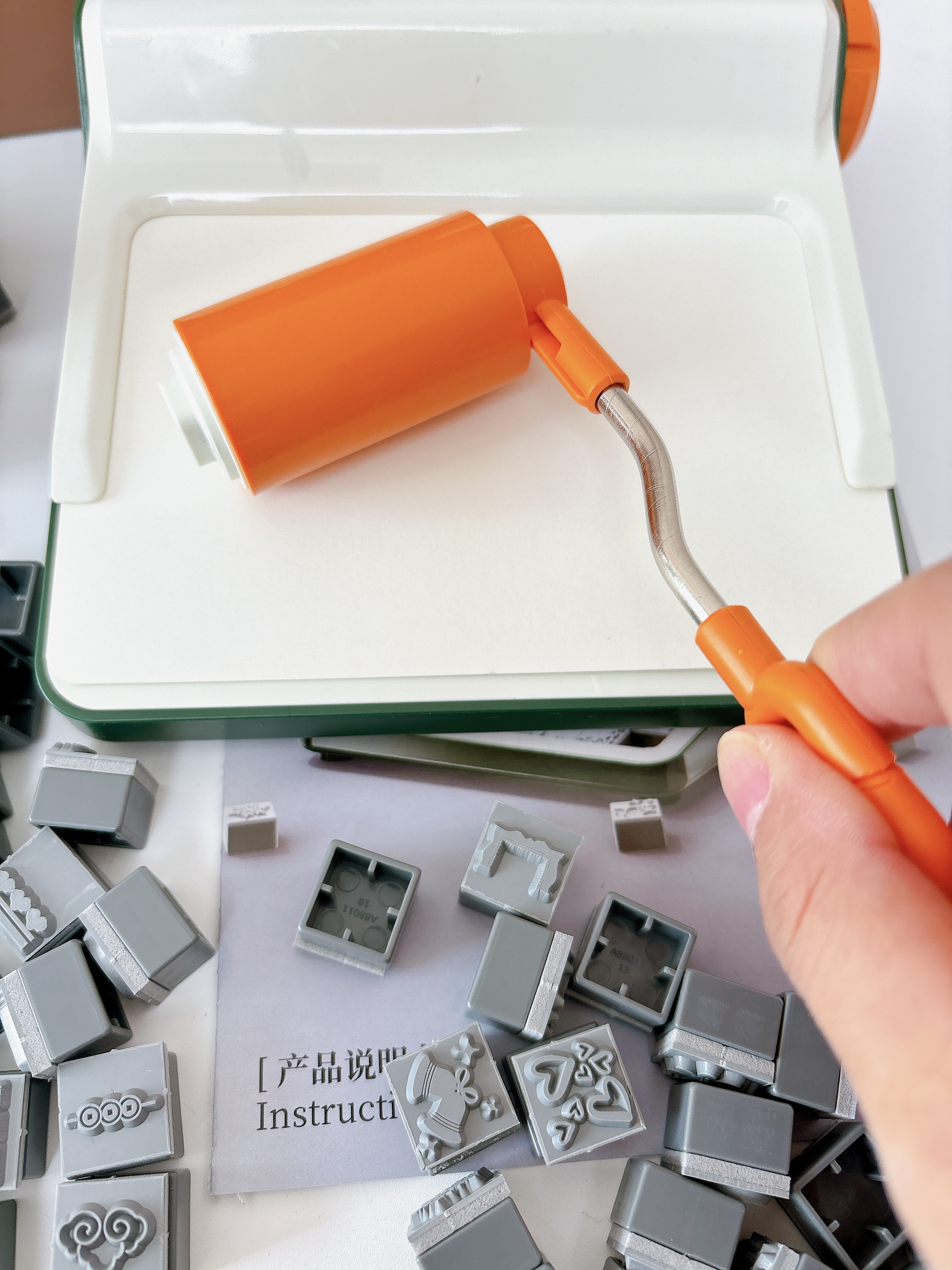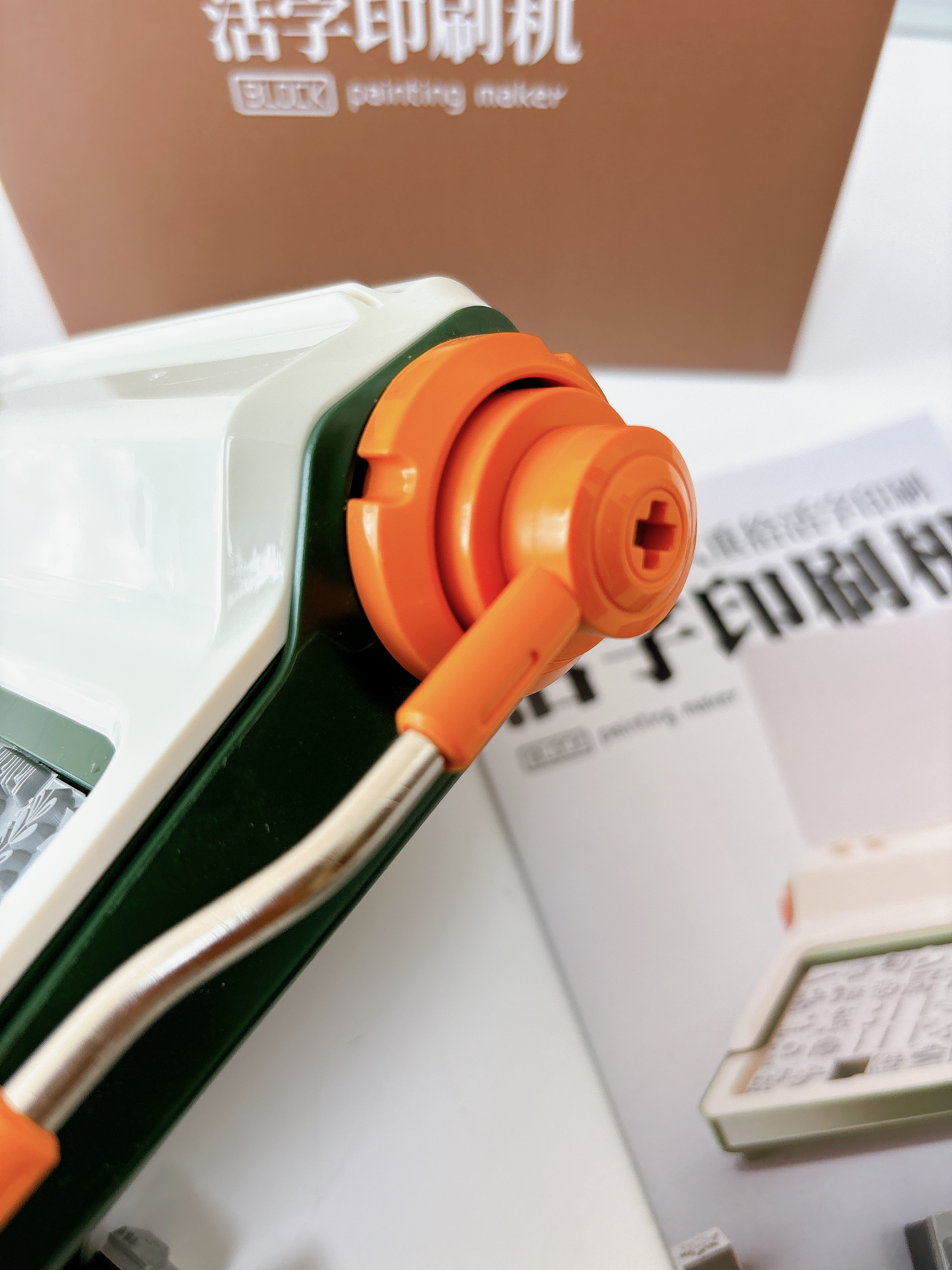 4️⃣放下摇杆,取出滚筒 均匀滚动活字的区域 体验印刷乐趣!