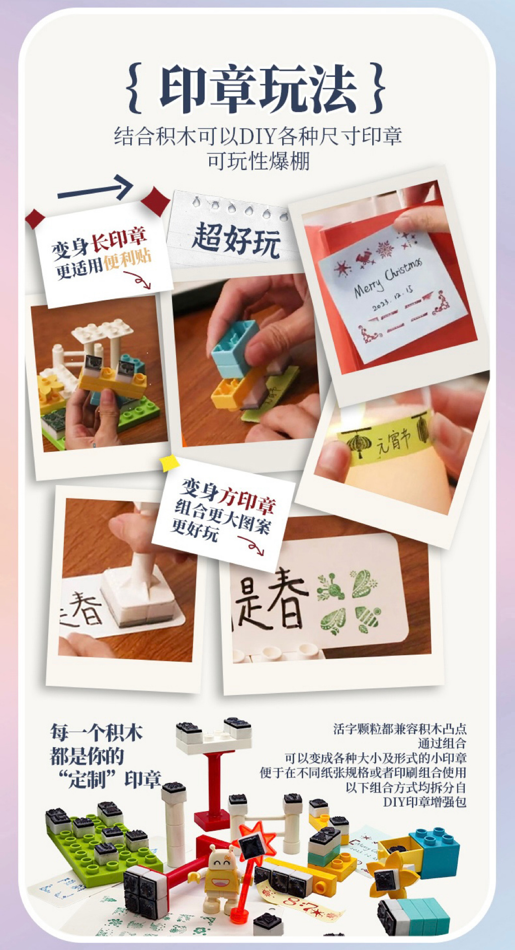 结合积木可以DIY各种尺寸印章