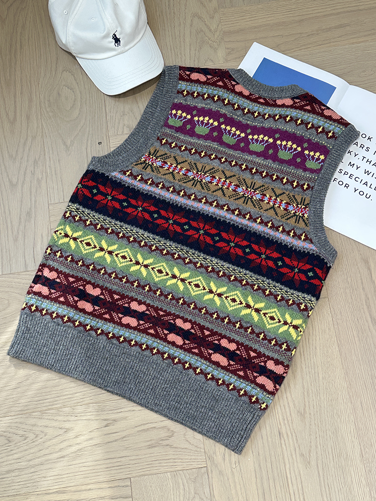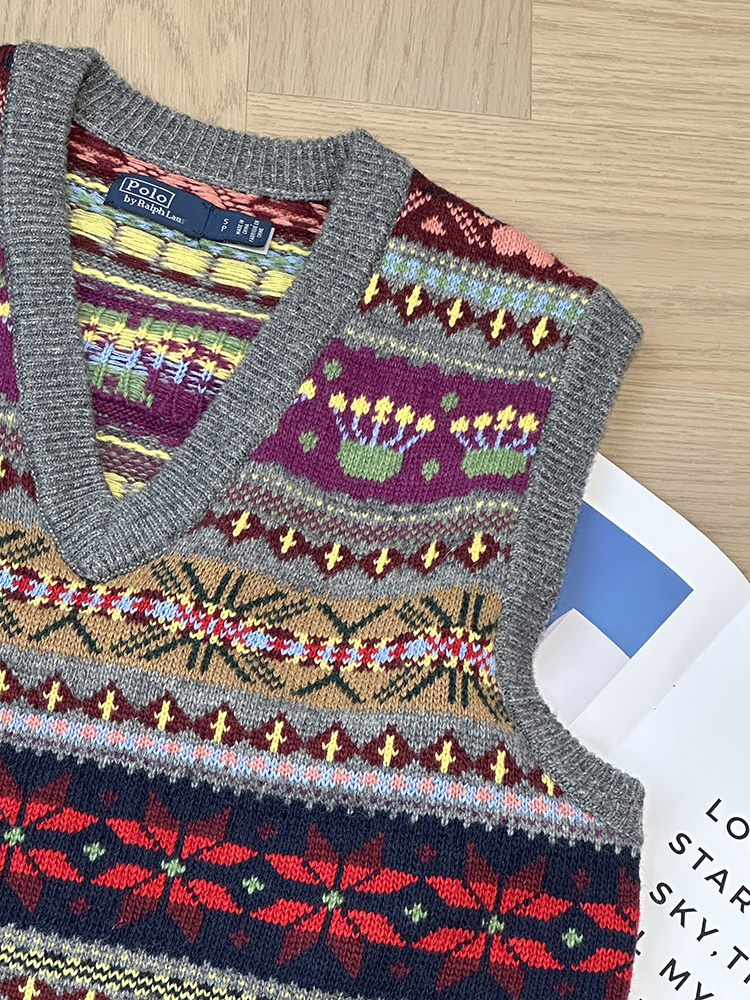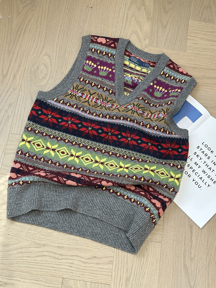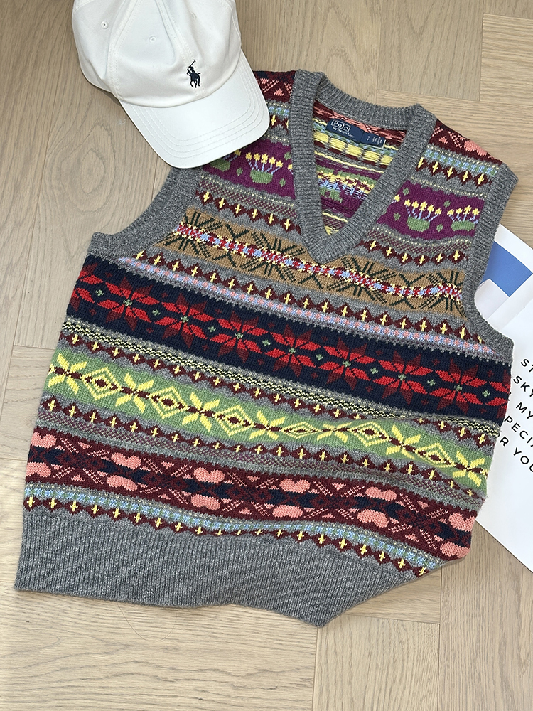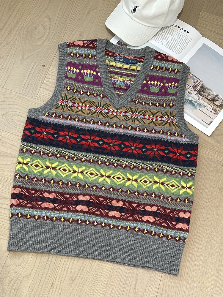 单品包邮THS-无 无补 PRL马球稀量原厂13色费尔岛雪柄无虚线提花/V领无袖针织 QY008