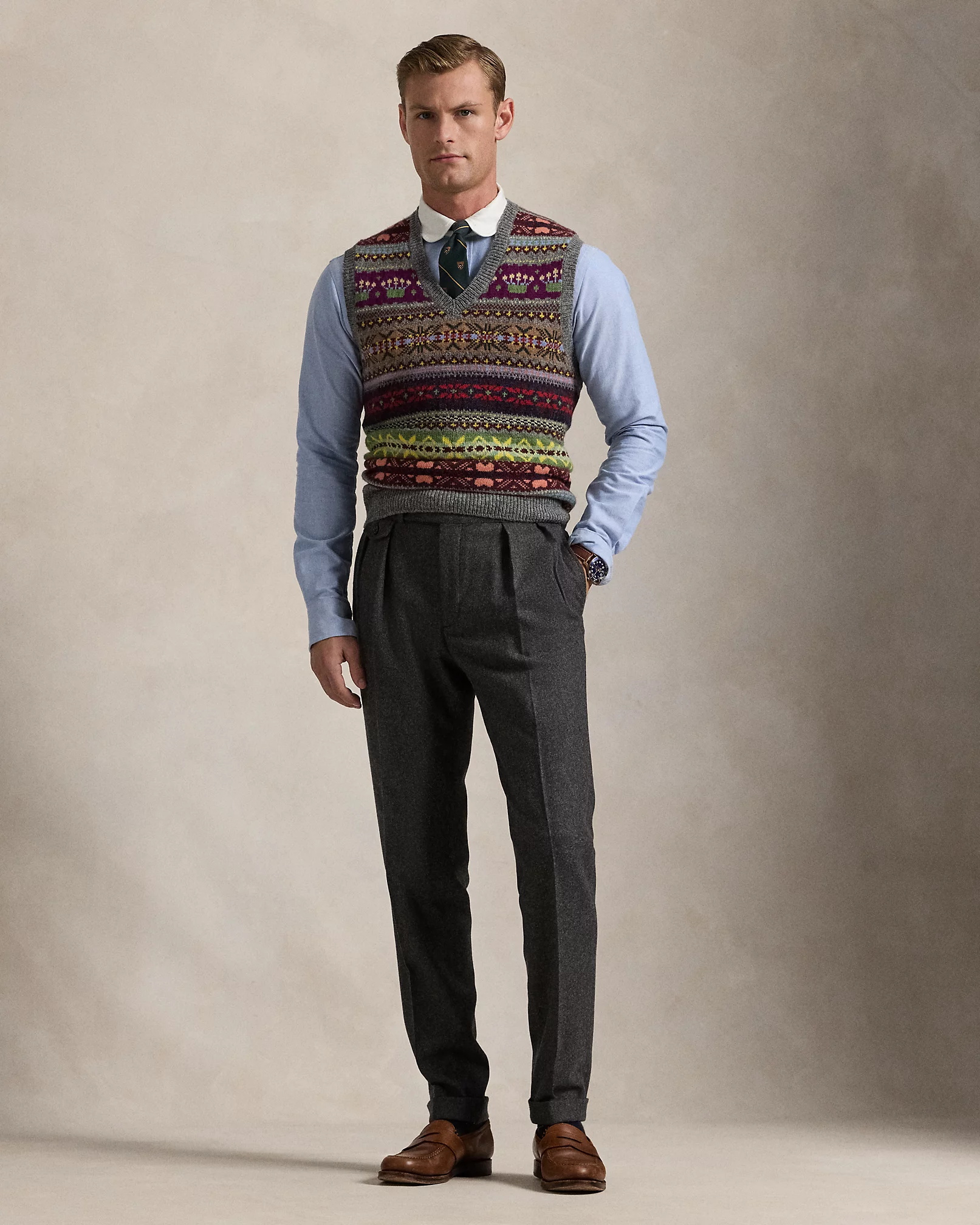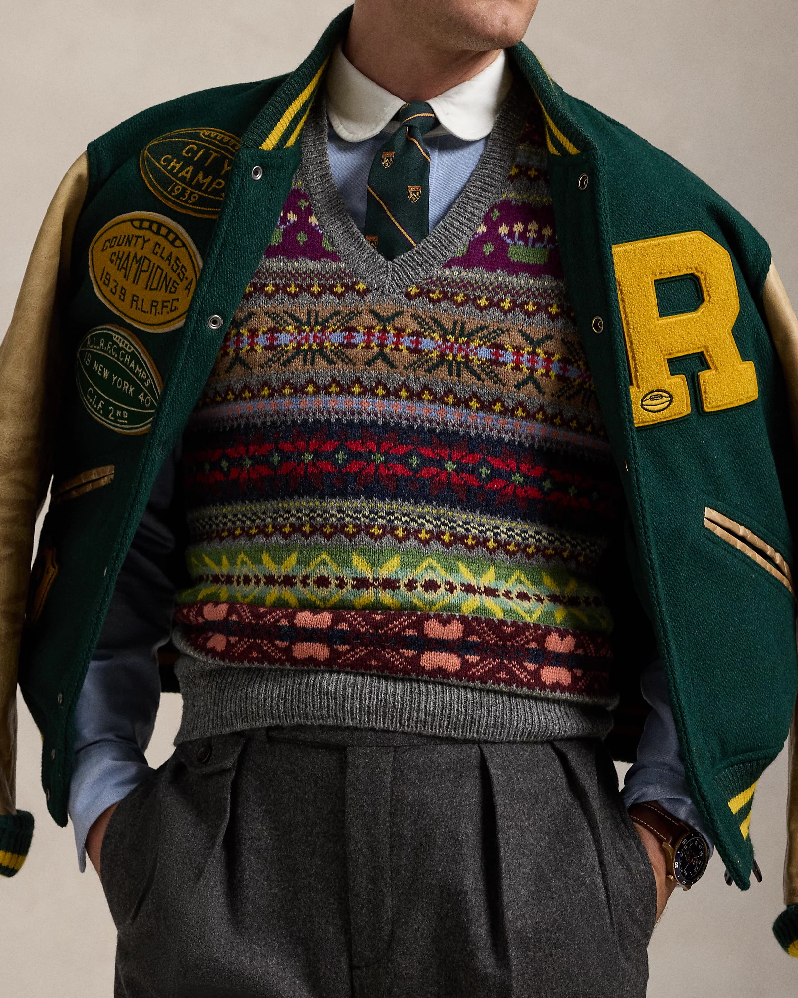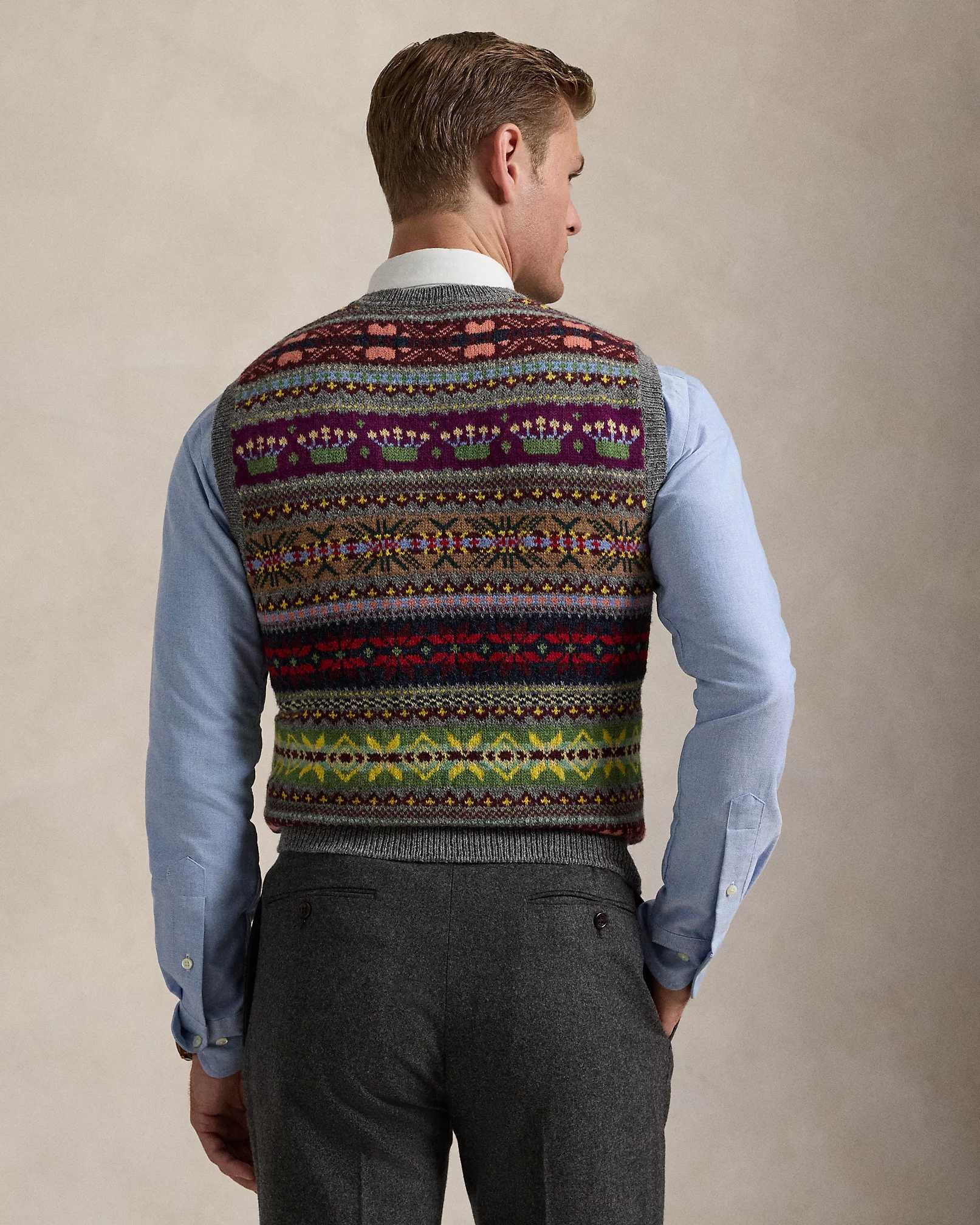 单品包邮THS-无 无补 PRL马球稀量原厂13色费尔岛雪柄无虚线提花/V领无袖针织 QY008