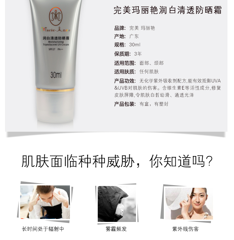 【预售 急单慎拍】完美玛丽艳润白清透防晒霜30ml 原价280元