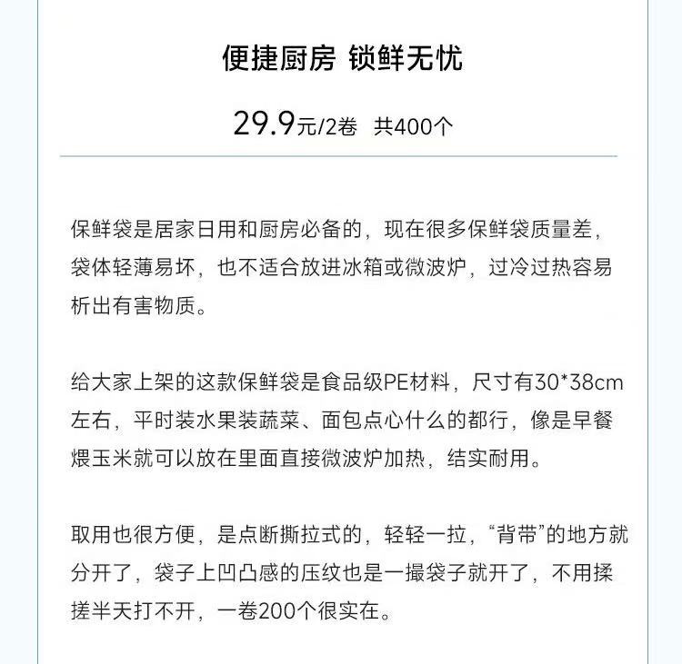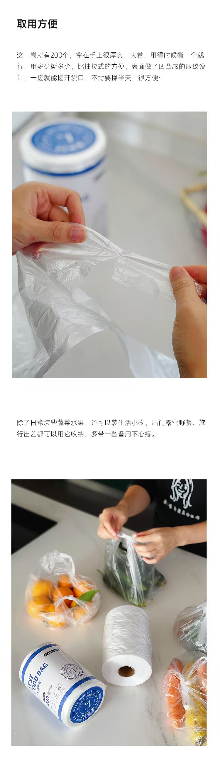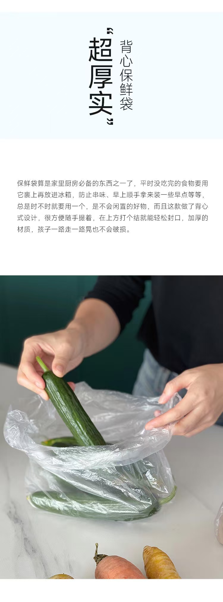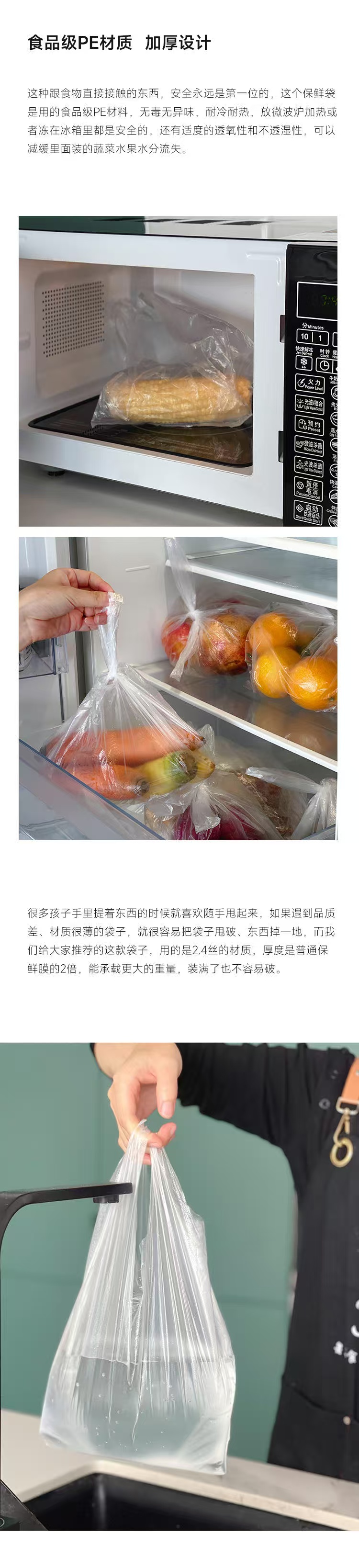 【背心保鲜袋】【安全、保鲜、存储】食品级PE材质 可进冰箱和微波炉 打结,手提方便 2卷400个 预售3天