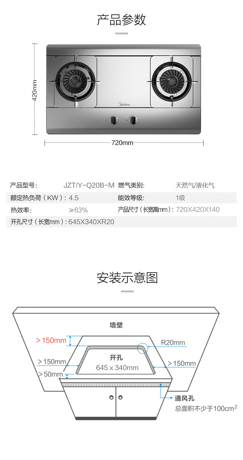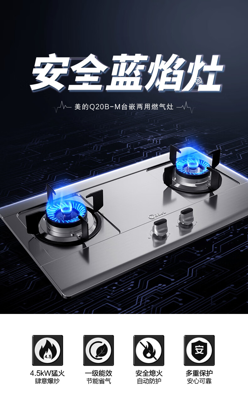 美的(Midea)4.5KW大火力 台嵌两用 不锈钢面板 一级能效 JZT-Q20B-M