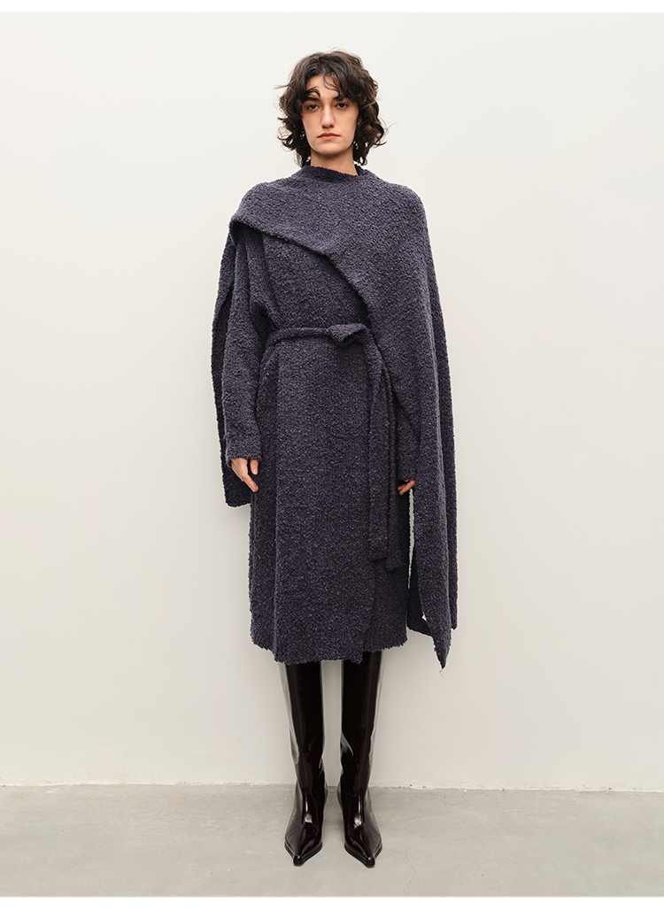 HIDEMI 羊驼毛系列静谧蓝加厚浴袍式腰带款慵懒大衣两件套 大衣/长坎肩