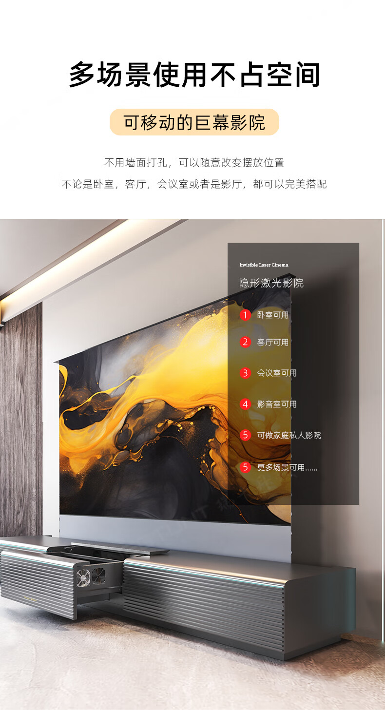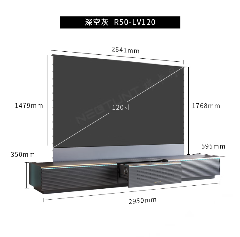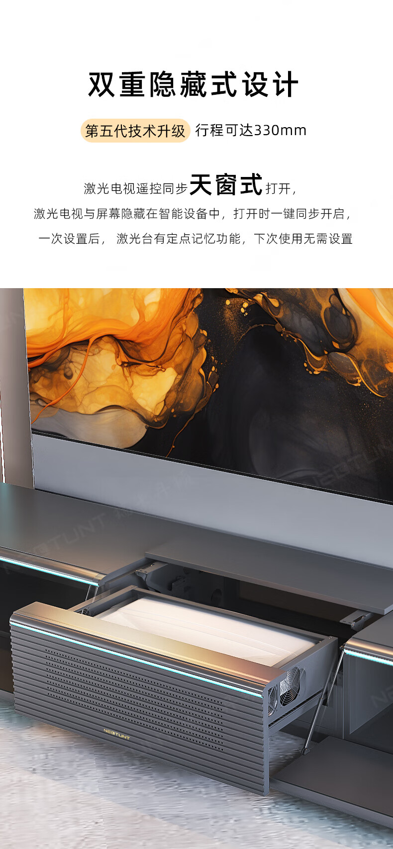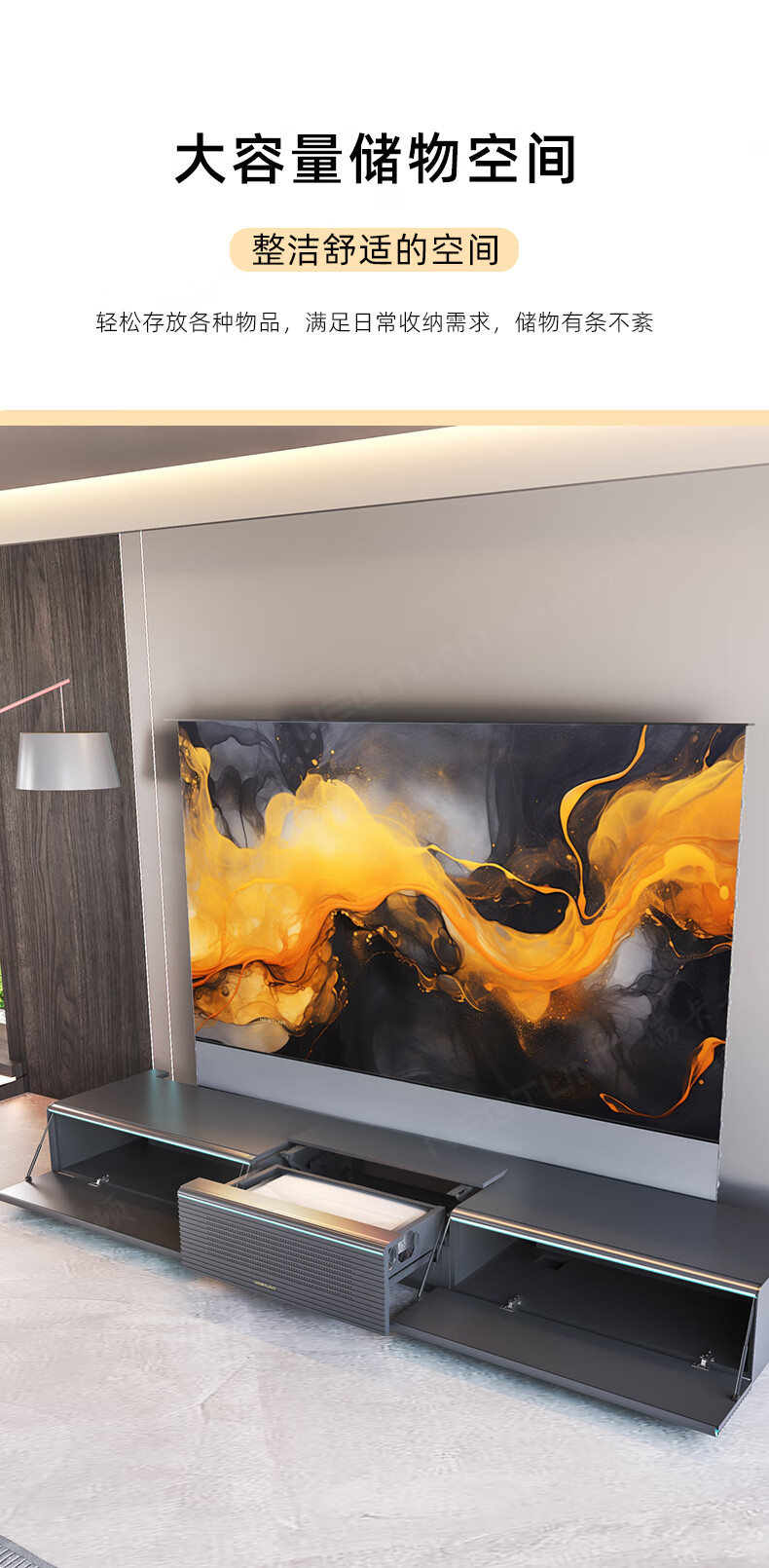 舜合 R50地升屏隐形家庭影院激光电视一体柜100-120英寸专用电视柜电动升降【海信套装】 2.95米激光柜+120寸地升黑栅幕+海信500U