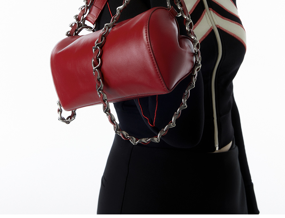 [福利价]lost in echo设计师品牌斜挎包单肩链条皮带装饰圆筒爱心包流浪包