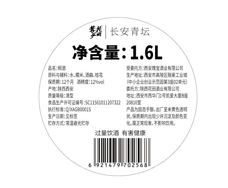 花田巷子 长安青坛心意礼 12度大坛米酒坛装1.6L礼盒