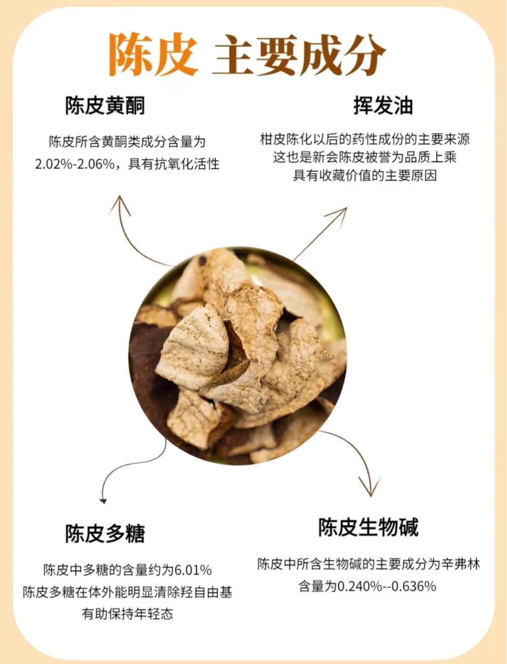 陈皮独特的柑橘香气,清新脱俗,直接含食或泡水