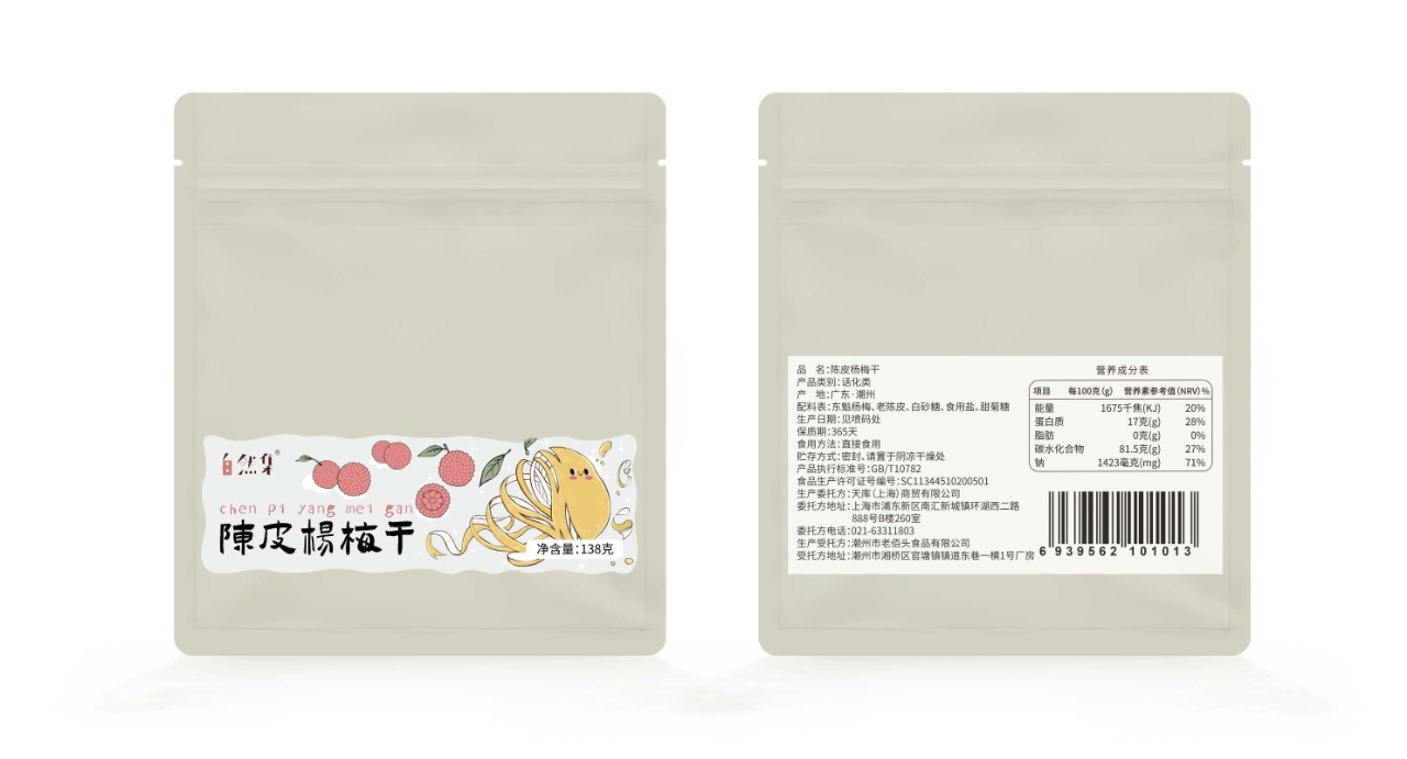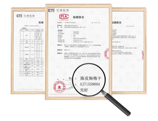 自然集的陈皮杨梅干品质经得起三方检测公司的质检
