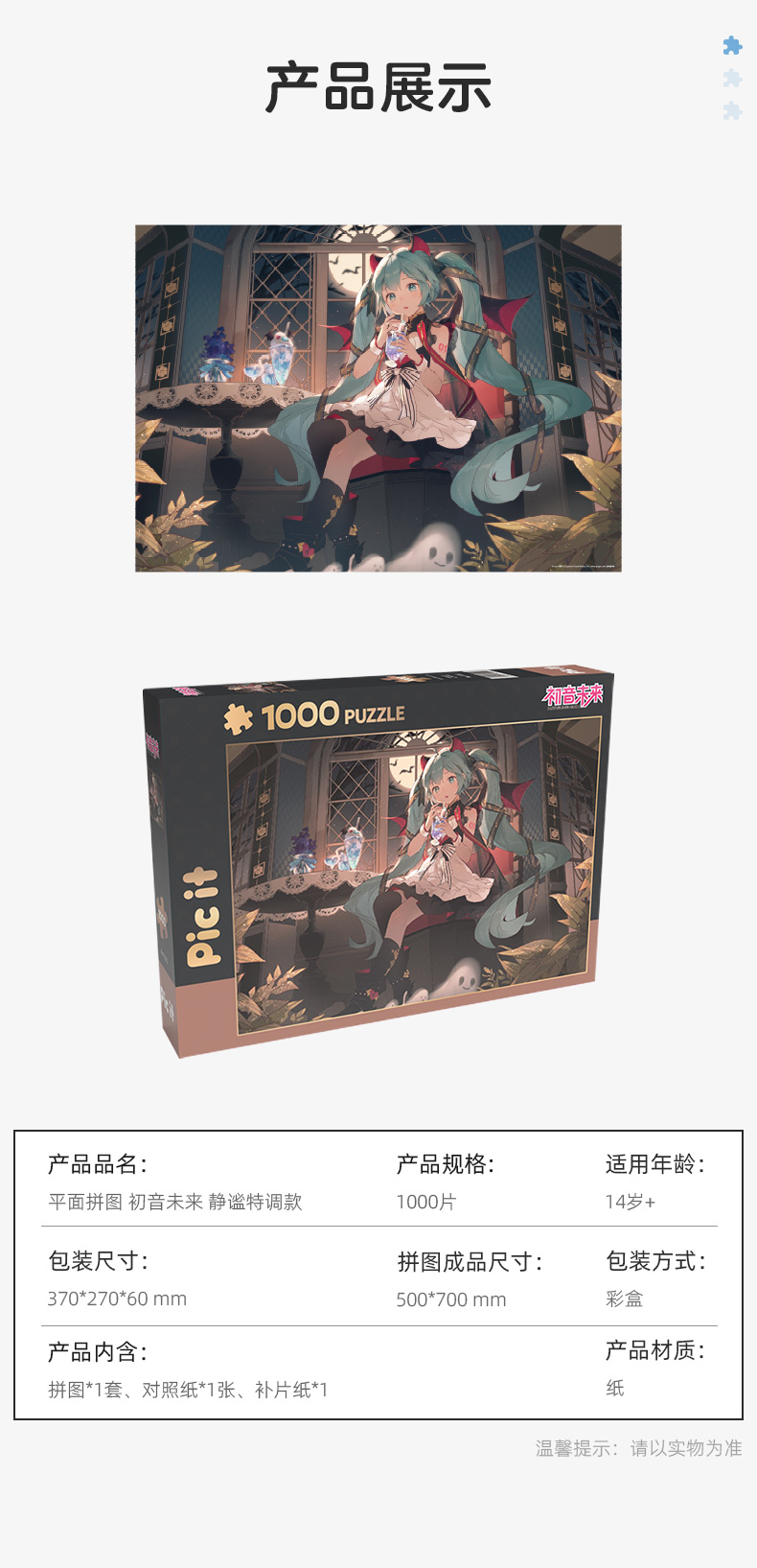 pic it 1000片平面拼图 初音未来 静谧特调PITCKS71311