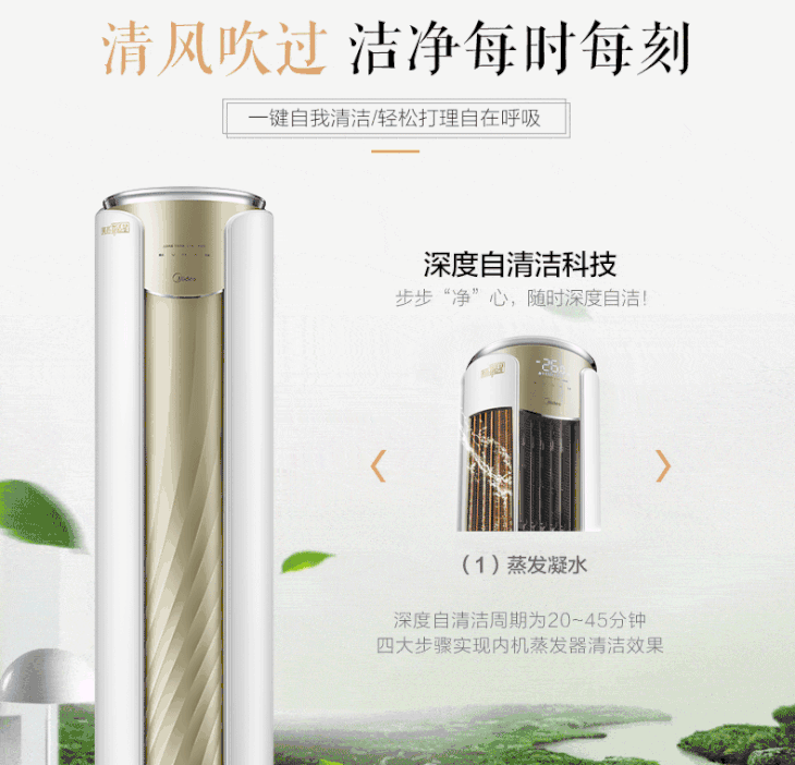 美的(Midea)(110753) 3匹 无风感 一键智清洁 一级能效 舒适星 变频冷暖客厅圆柱空调 摩卡金 KFR-72LW/BP3DN8Y-YB333(B1)A