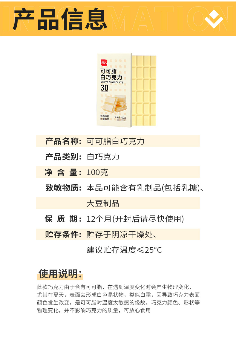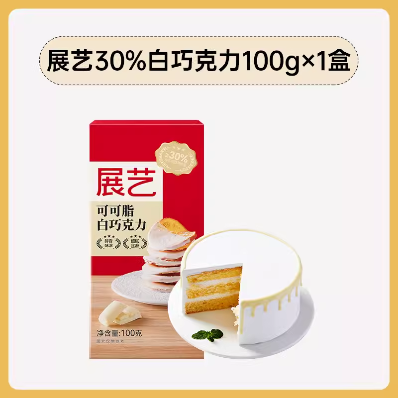 100g 展艺 30% 可可脂 【白】巧克力 巧克力排块 冰淇淋蛋糕慕斯淋面装饰
