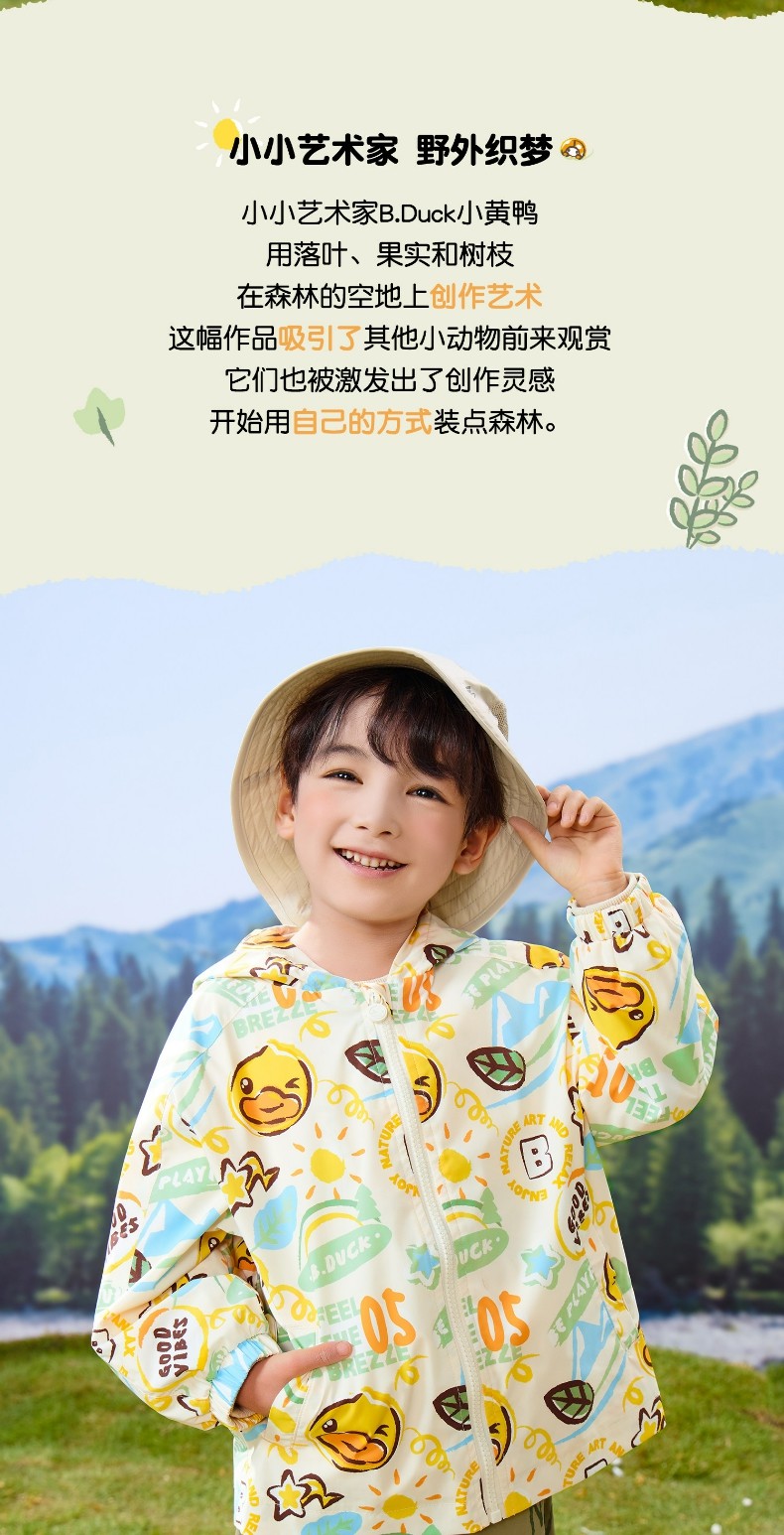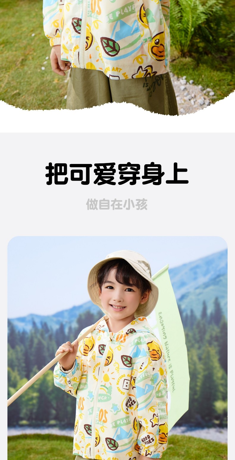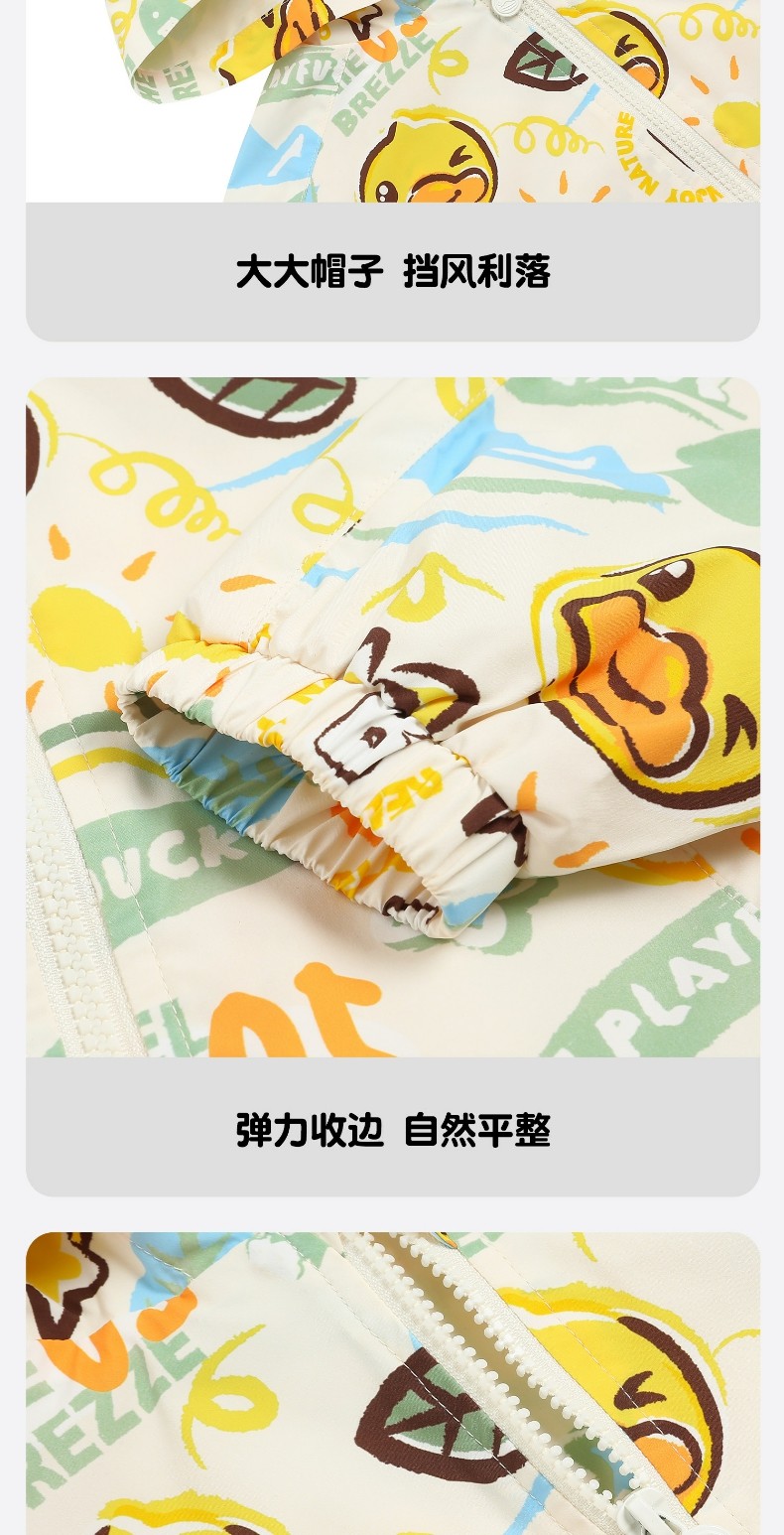 bduck小黄鸭童装春秋男童外套连帽春秋新款儿童宝宝户外防风夹克90-130 BF1611059