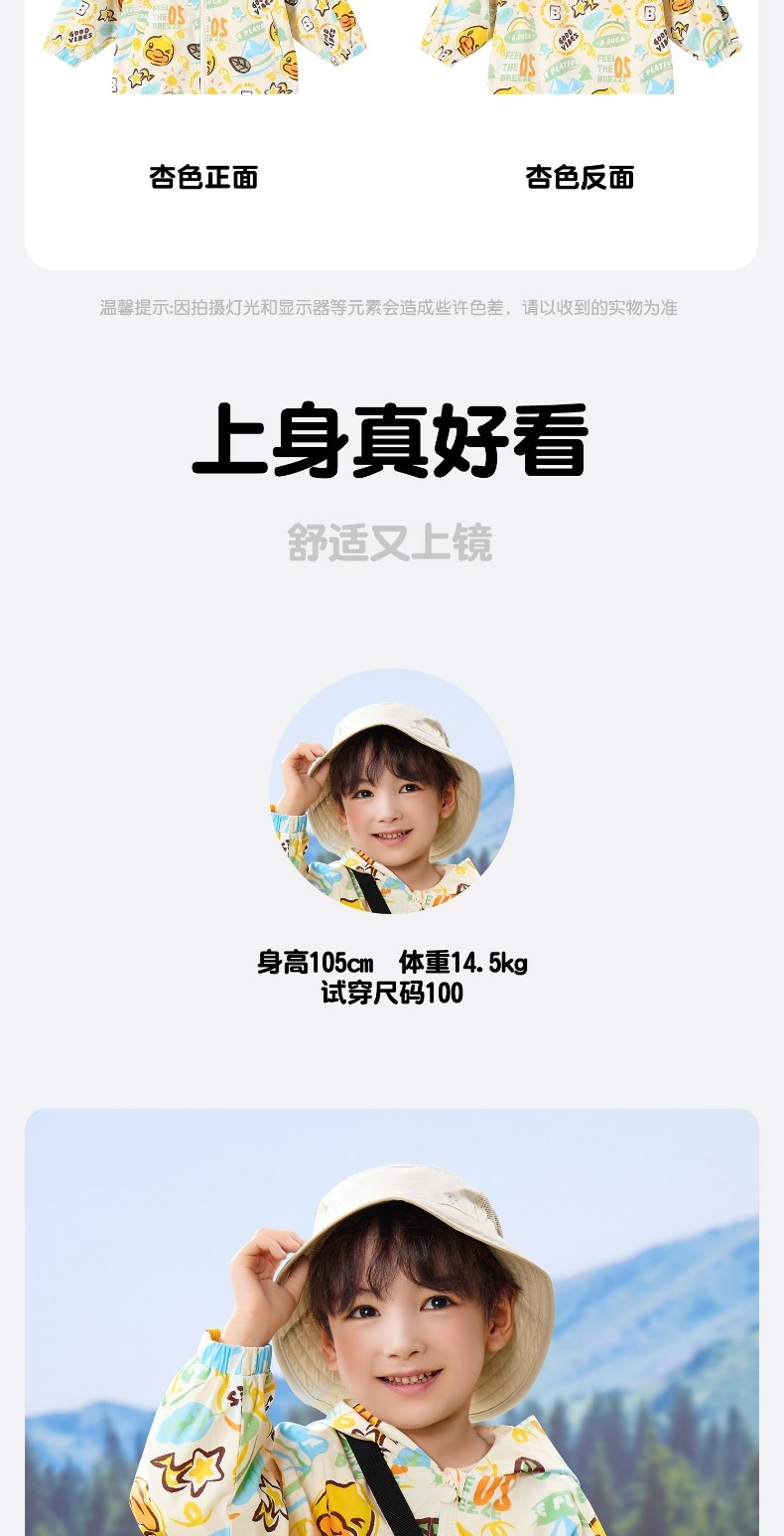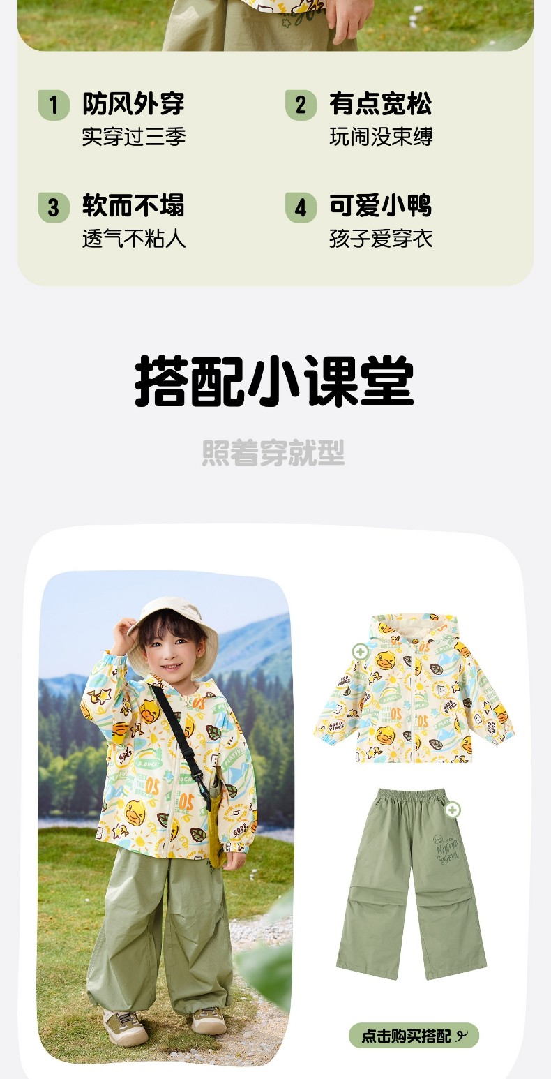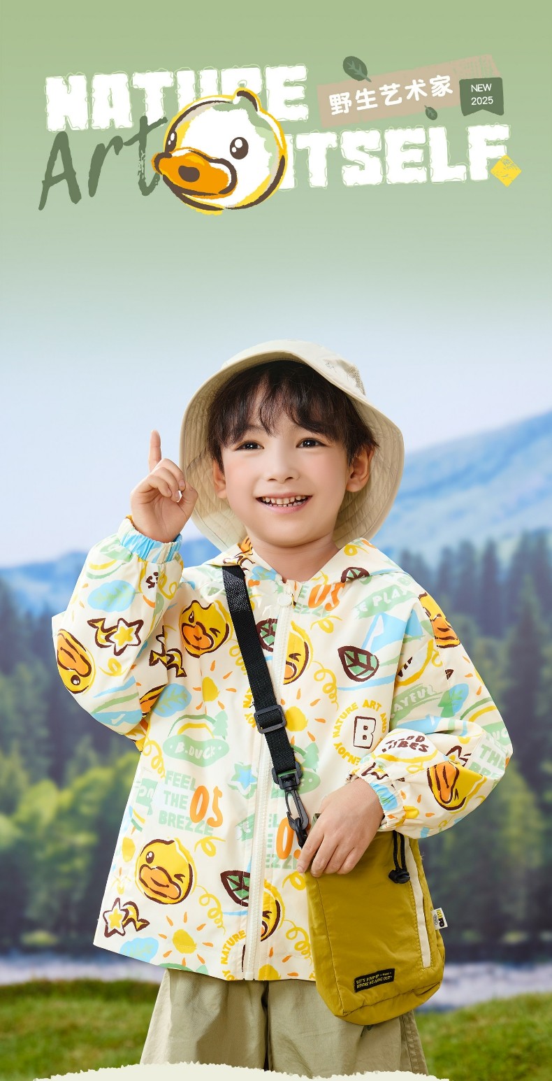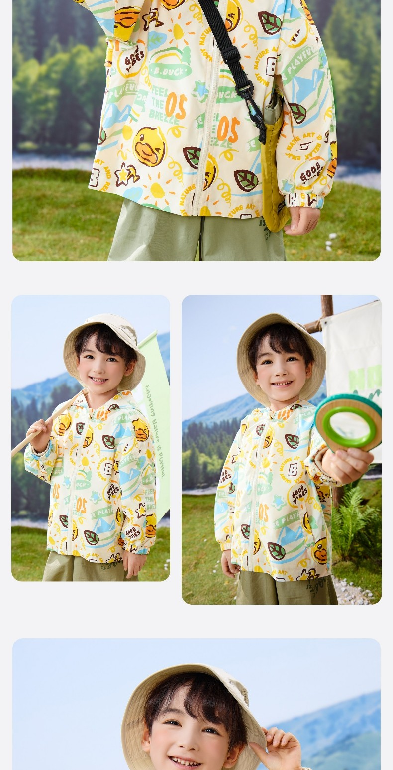 bduck小黄鸭童装春秋男童外套连帽春秋新款儿童宝宝户外防风夹克90-130 BF1611059