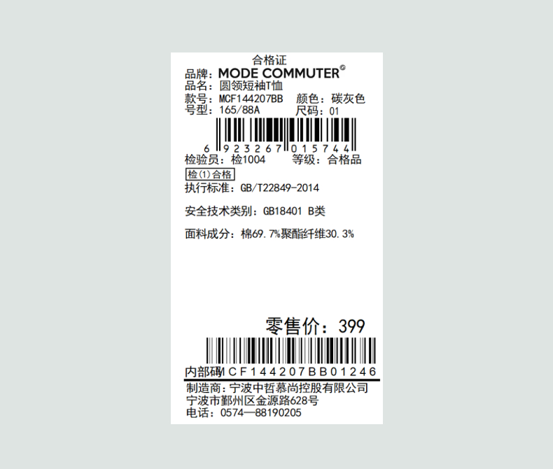 MODE COMMUTER | MC不潮品32支索罗那高弹螺纹植绒圆领短袖T恤