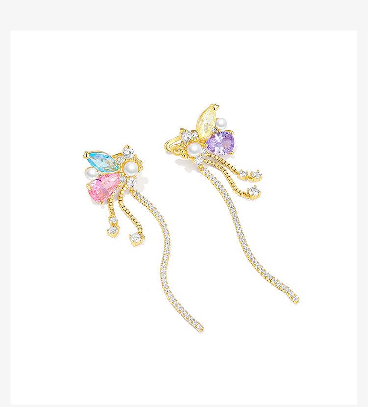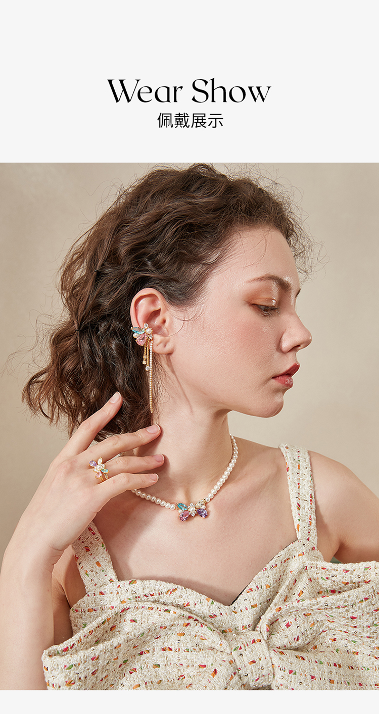 ZEGL设计师彩色蝴蝶流苏耳夹女无耳洞小众设计感高级耳环秋冬耳饰