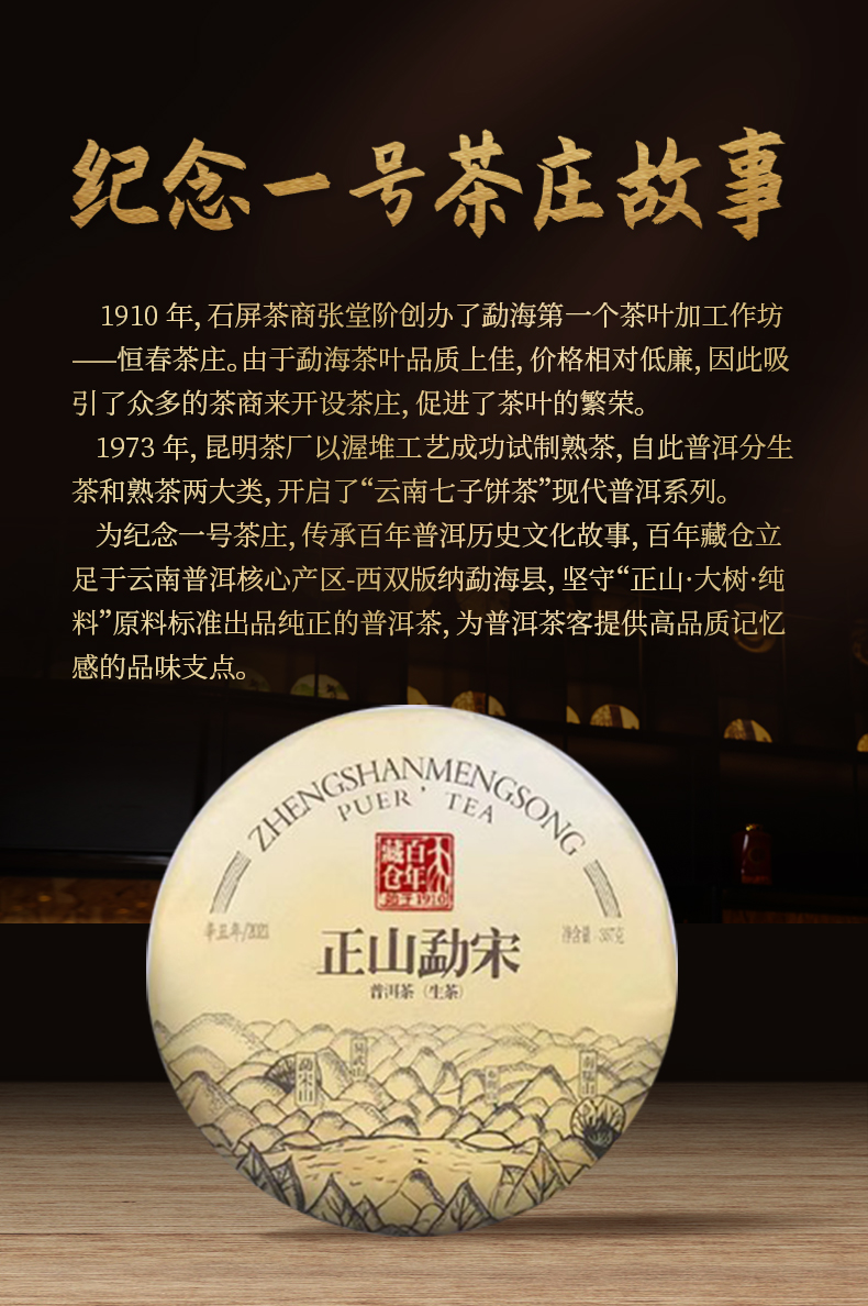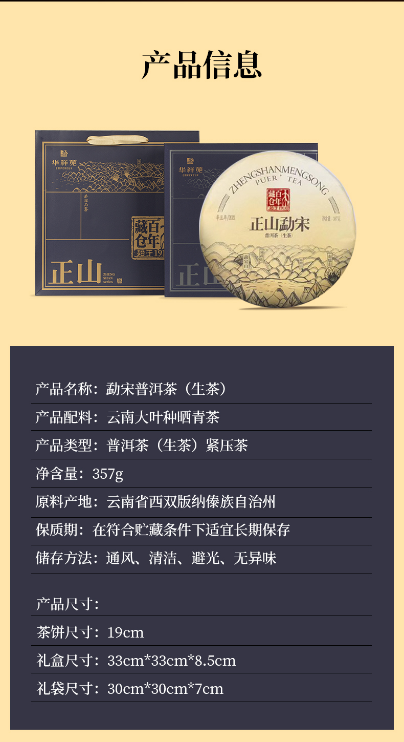 华祥苑 百年藏仓-357g勐宋正山普洱茶(2021年,生茶)