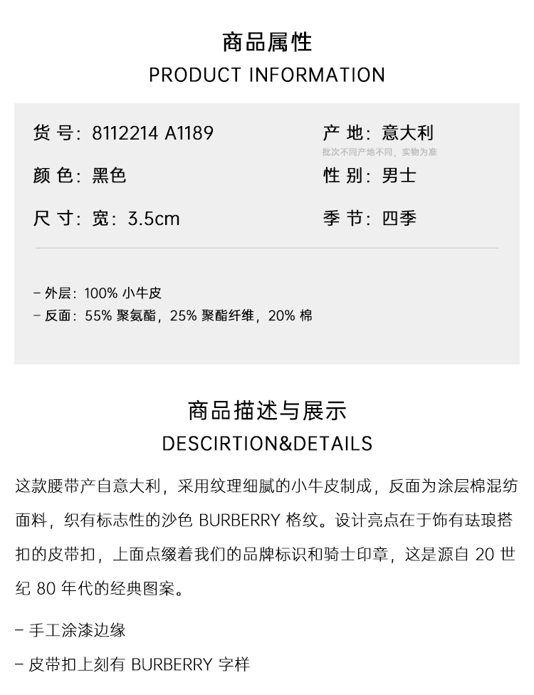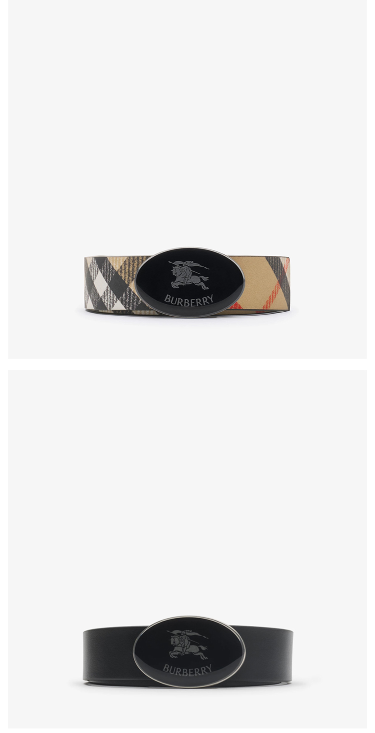 BURBERRY 巴宝莉 男士双面格纹椭圆形马术骑士印章腰带 黑色 8112214 A1189
