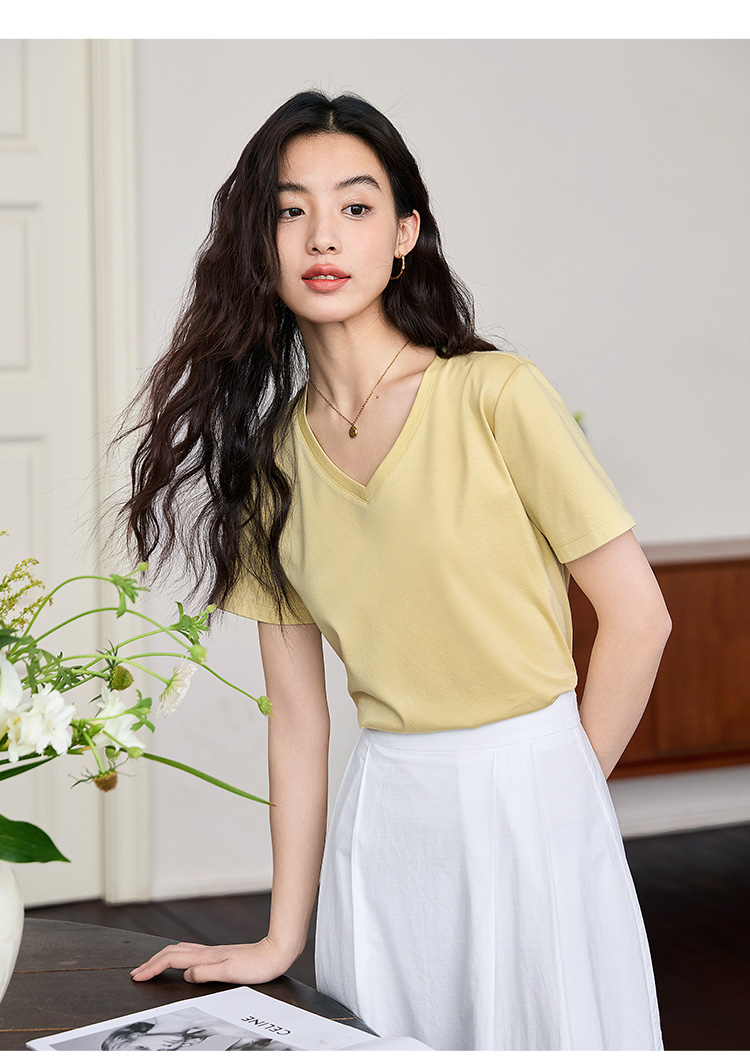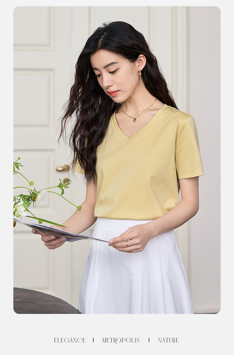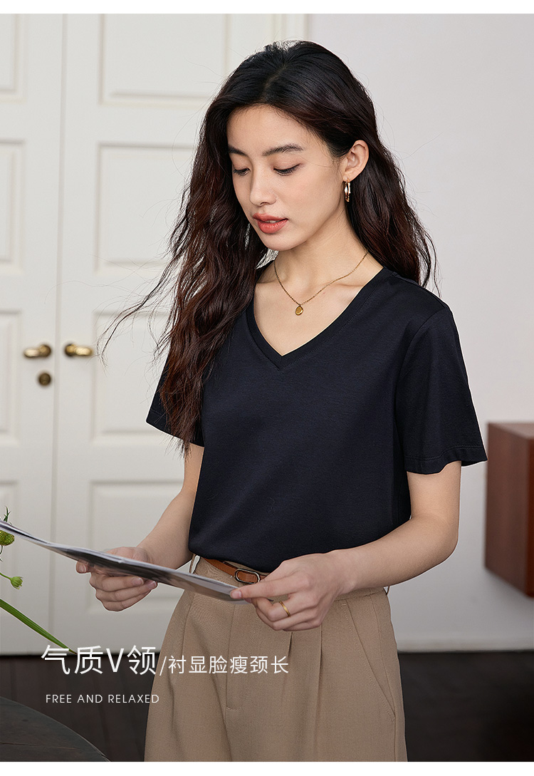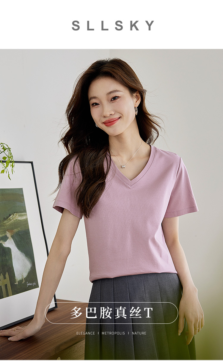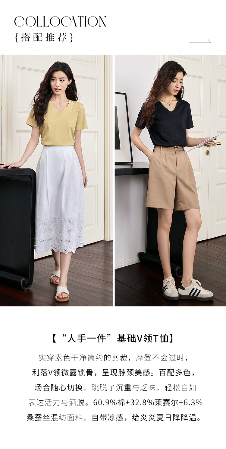 【专属特价】熙世界桑蚕丝短袖T恤女2025年夏季新款纯色百搭圆领天丝体恤上衣