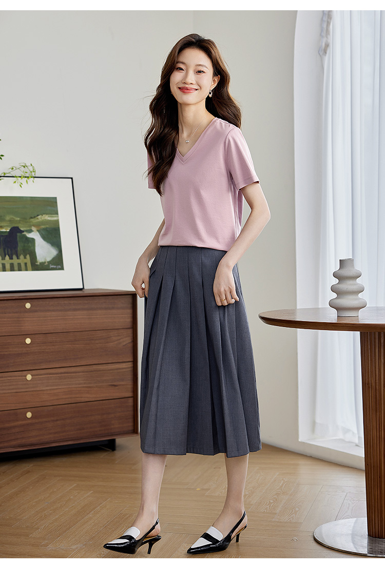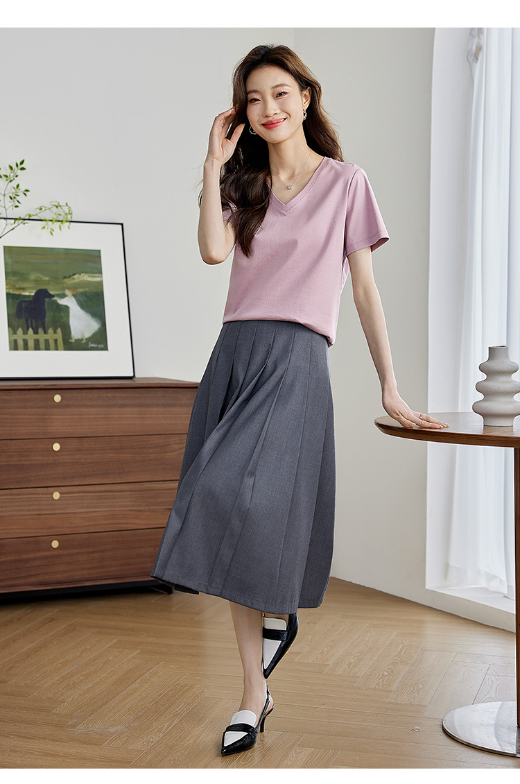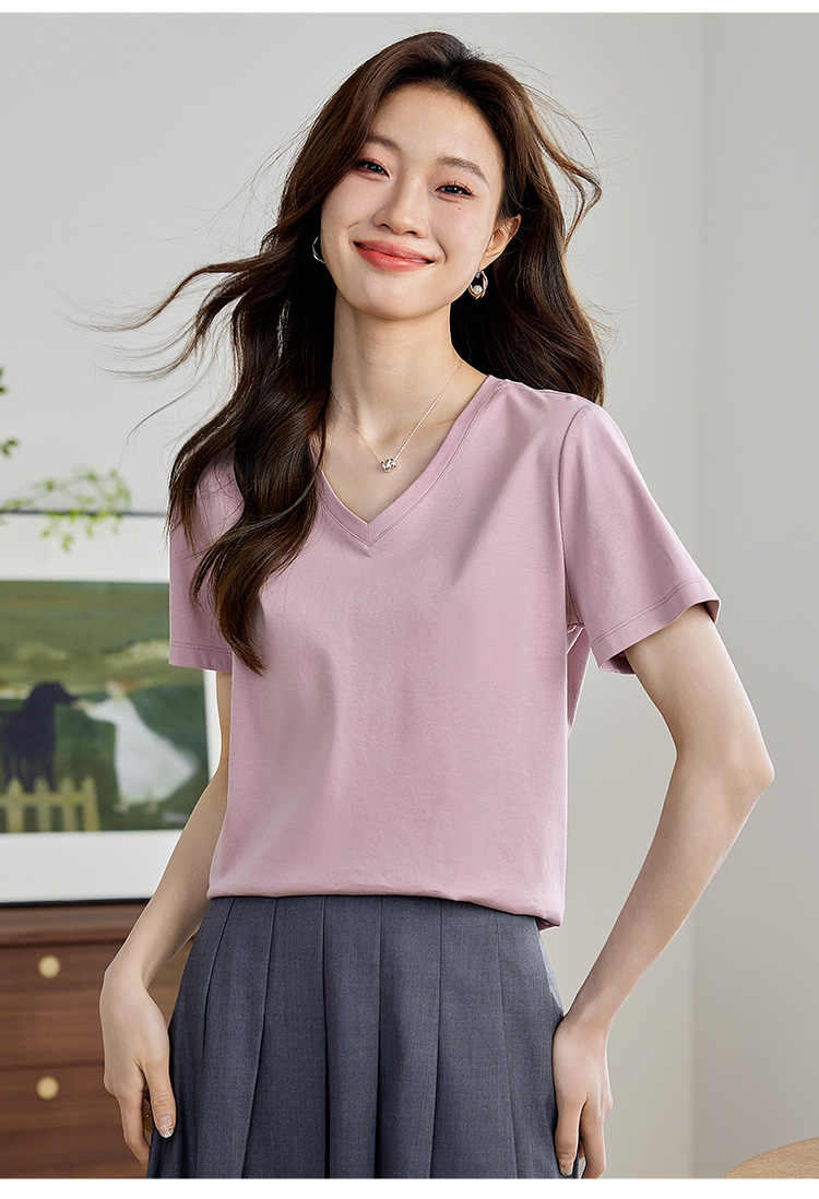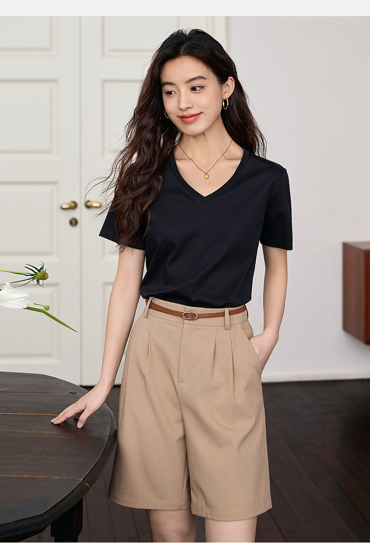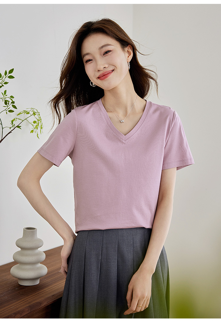 【专属特价】熙世界桑蚕丝短袖T恤女2025年夏季新款纯色百搭圆领天丝体恤上衣