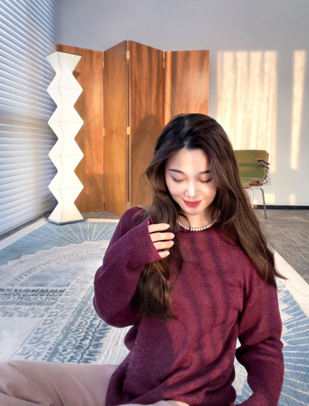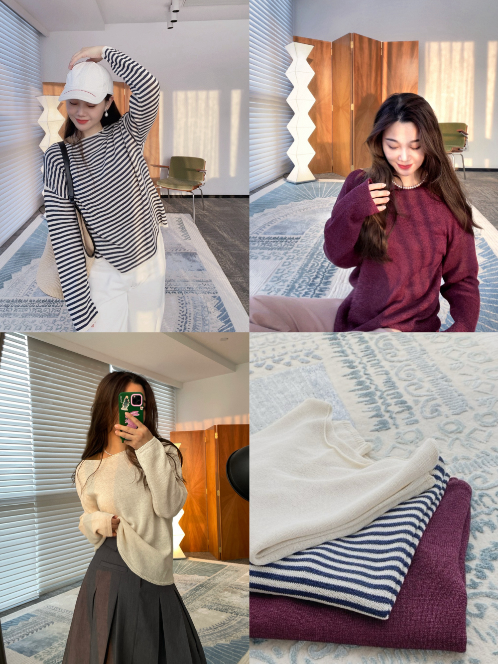 柔,酒红色复古~宽松版型怎么搭配都