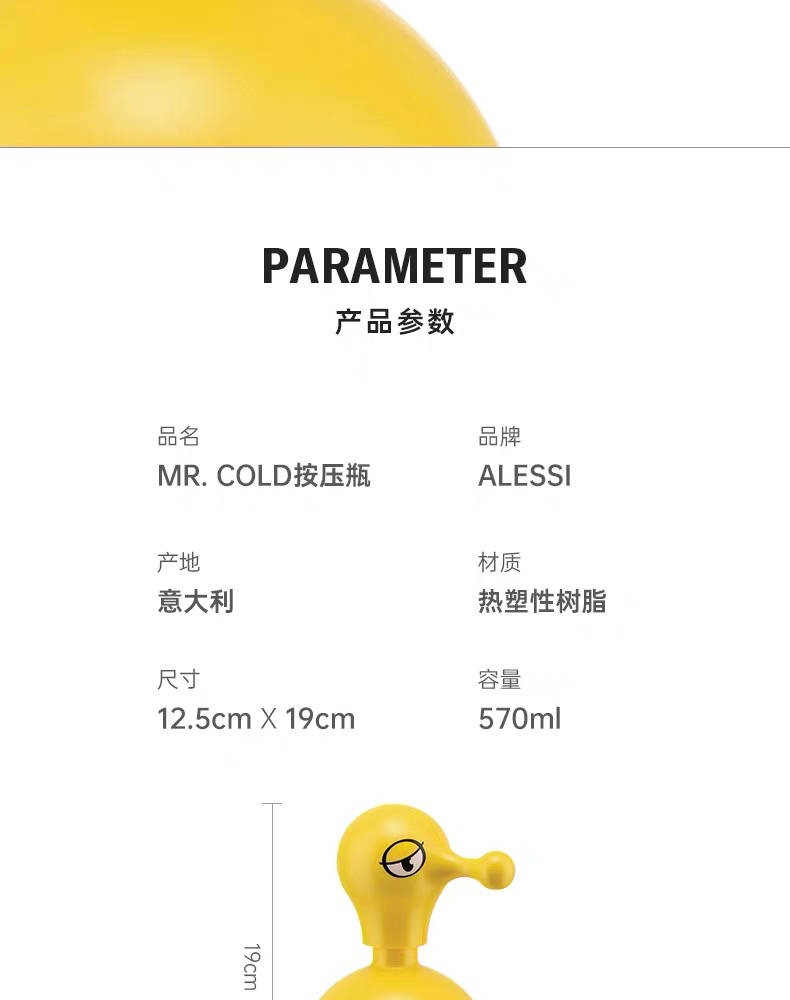 ALESSI/皂液按压瓶儿童可爱创意厨房洗洁精家用免打孔分瓶装
