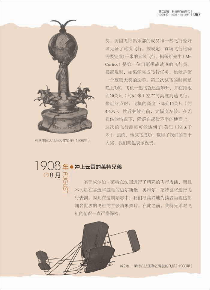 鉴于威尔伯•莱特(Wilbur Wright)在法国进行了精彩的飞行表演,而且不久后在靠近华盛顿的迈尔斯堡,奥维尔•莱特(Orville Wright)也将进行飞行表演。因此在这期杂志中,我们很高兴读者呈现这架闻名世界的飞机的首张清晰照片。在此之前,莱特兄弟对飞机的情况一直严格保密。