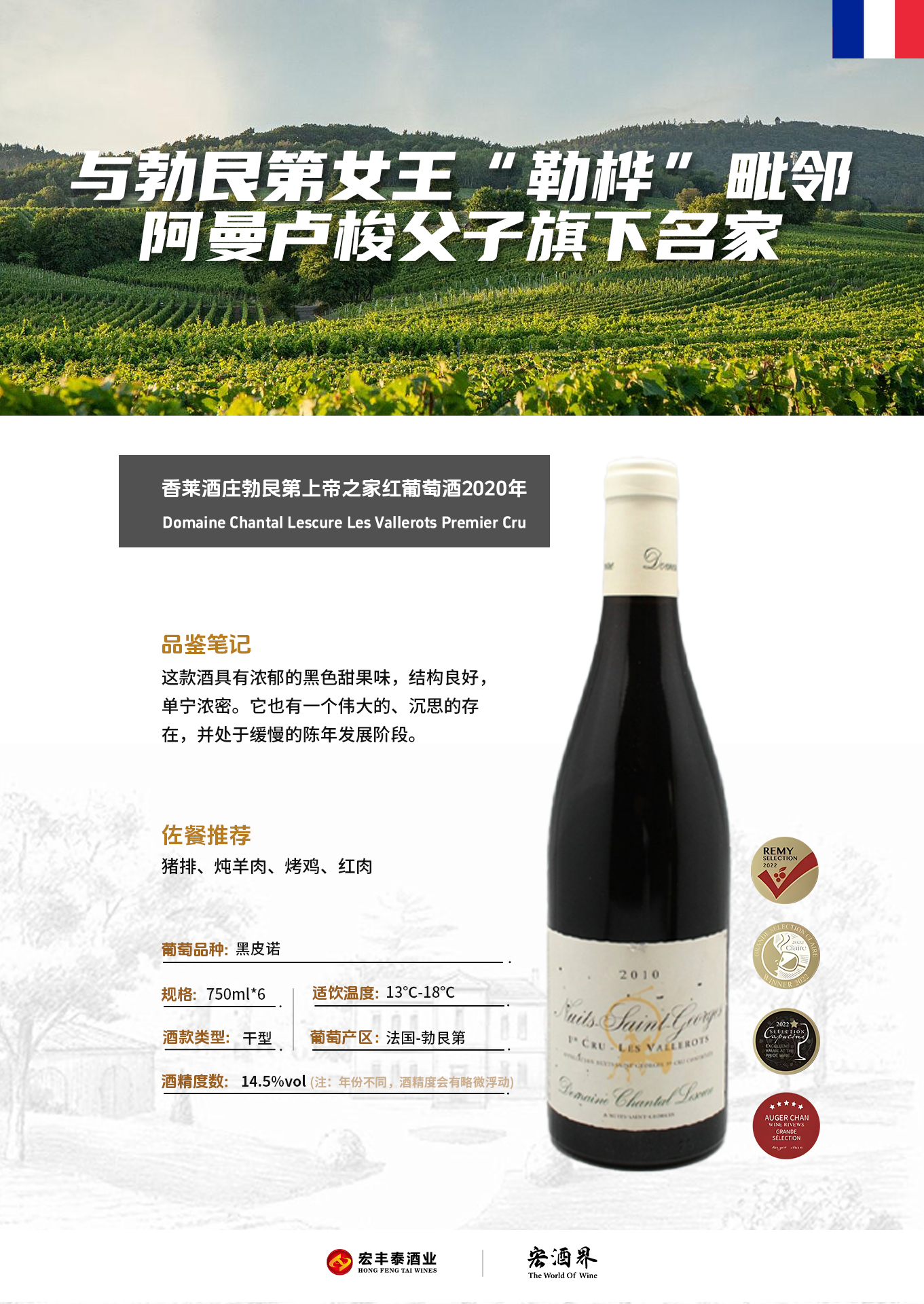 法国-香莱酒庄勃艮第上帝之家红葡萄酒2020年&宏酒界甄选