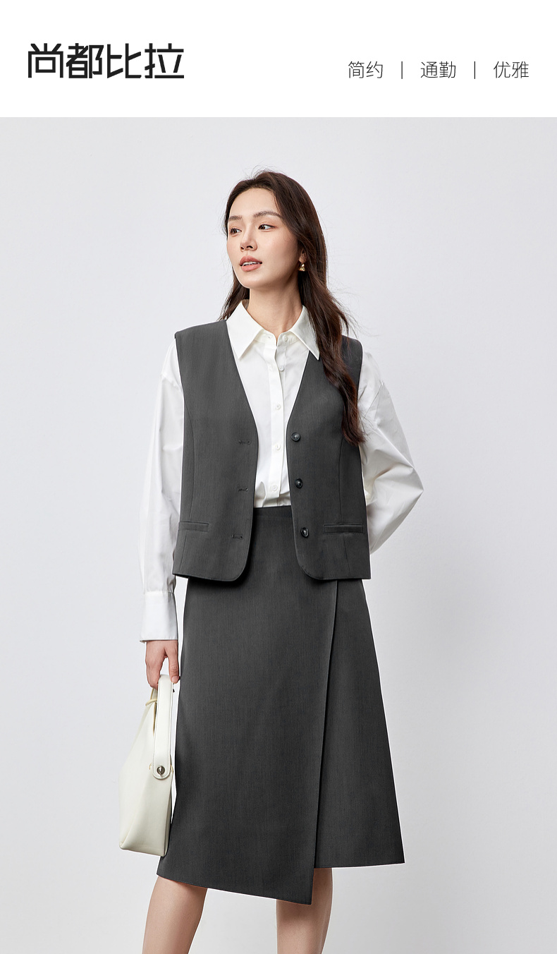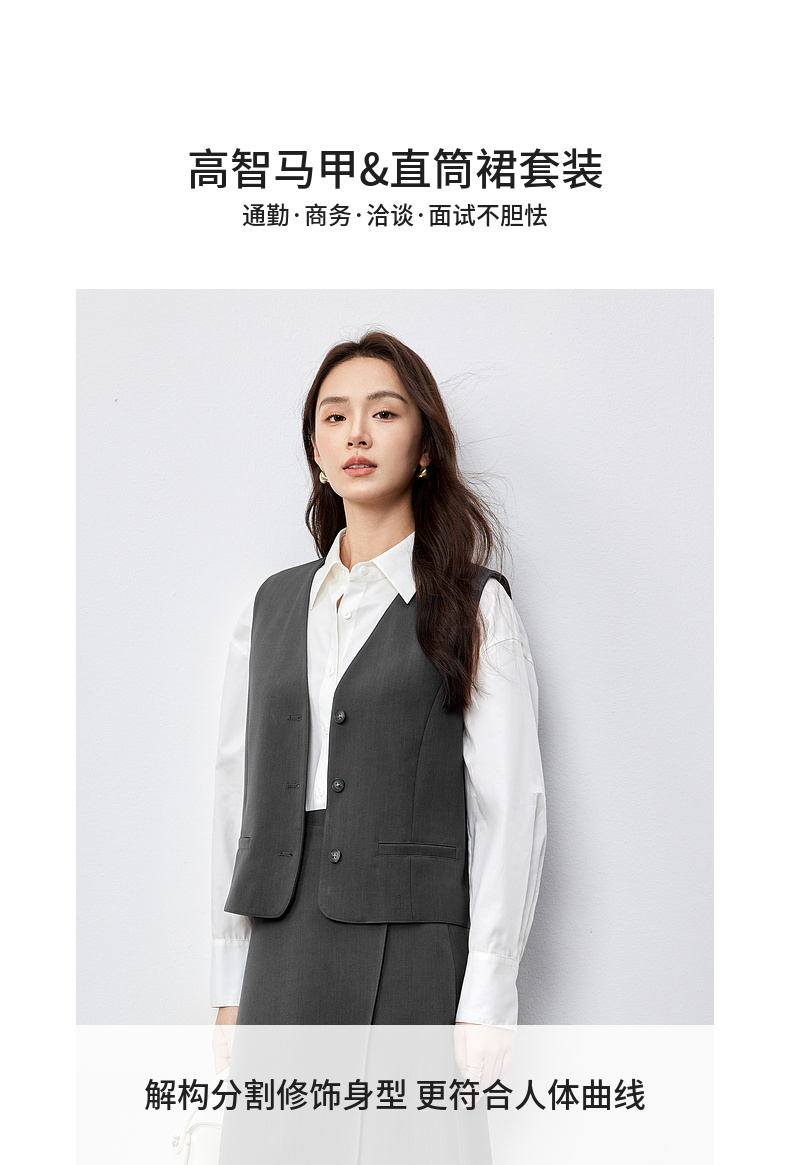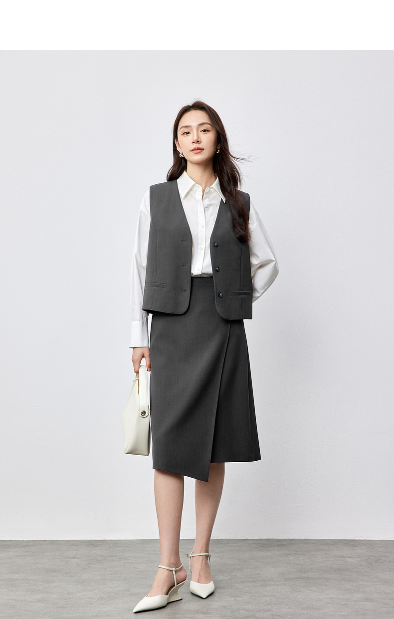【内购】都市通勤V领解构分割马甲外套&不规则斜搭片主直筒裙两件套-151Z57882