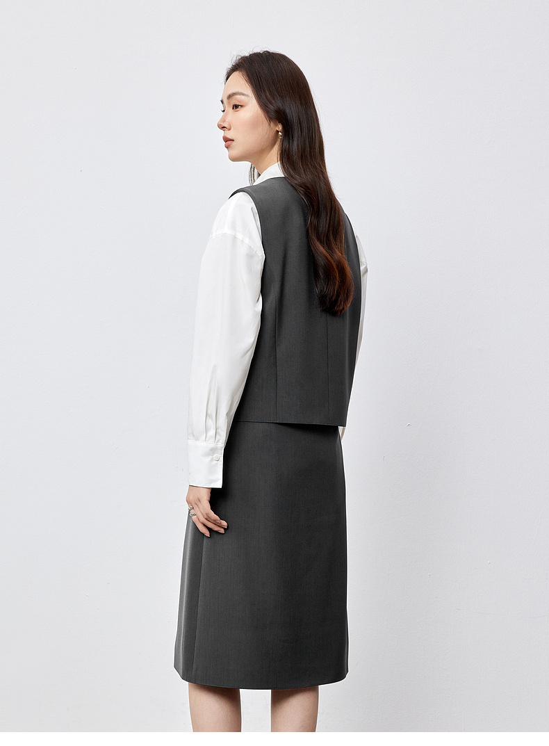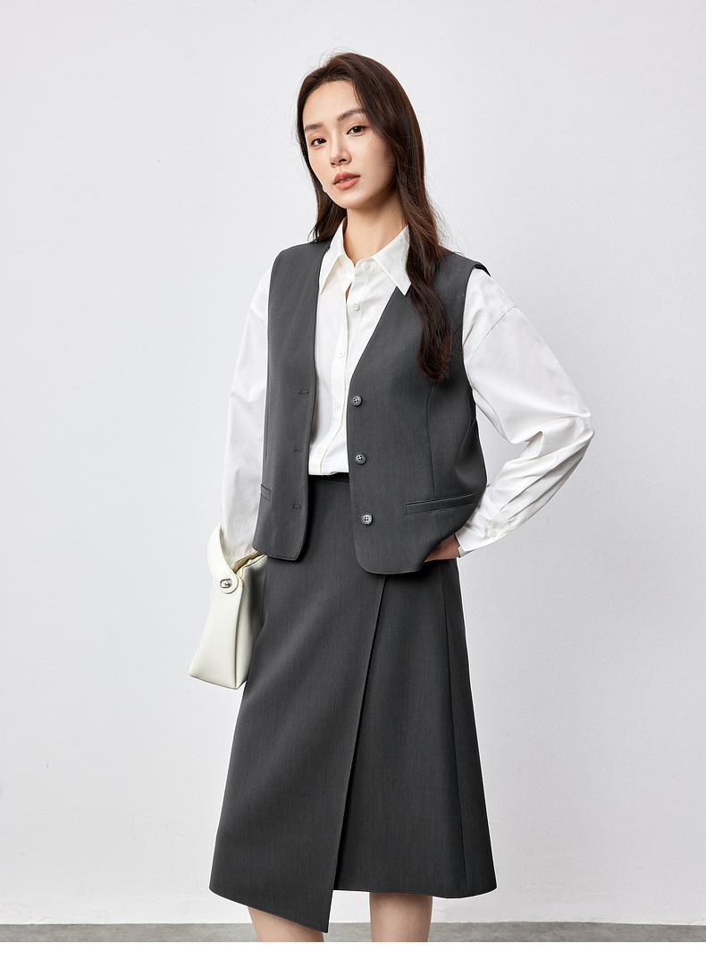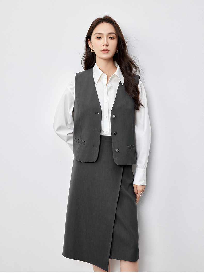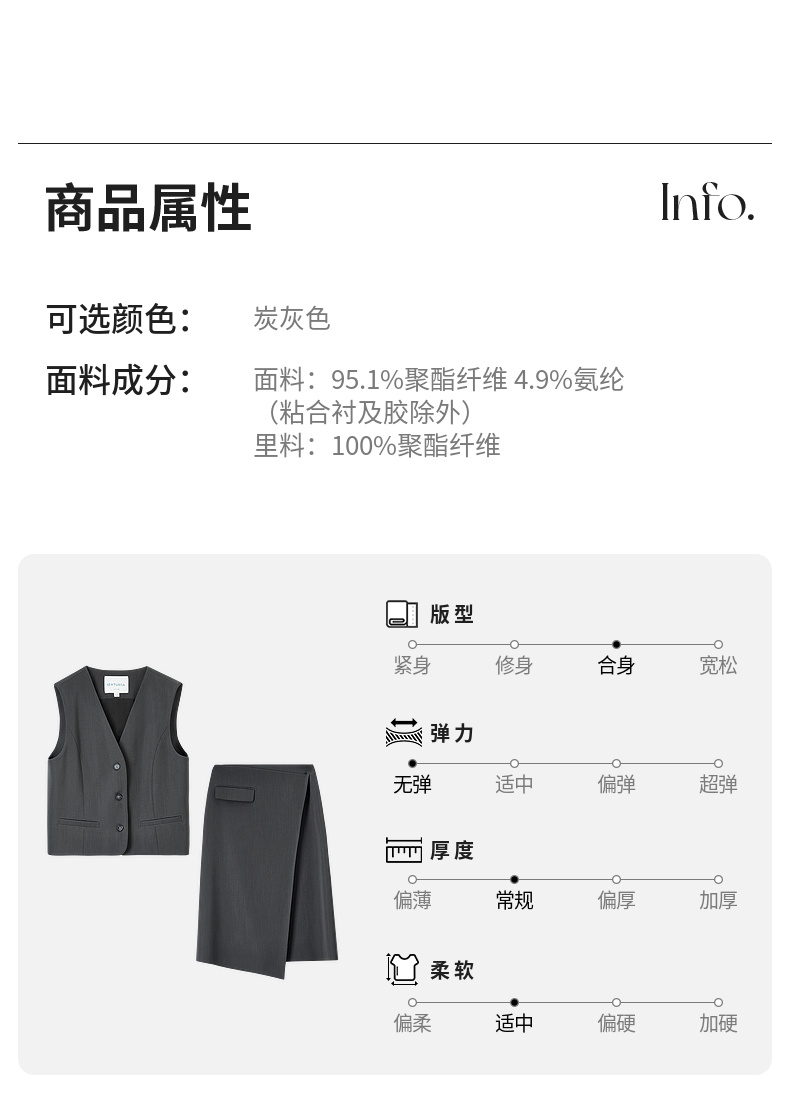 【内购】都市通勤V领解构分割马甲外套&不规则斜搭片主直筒裙两件套-151Z57882