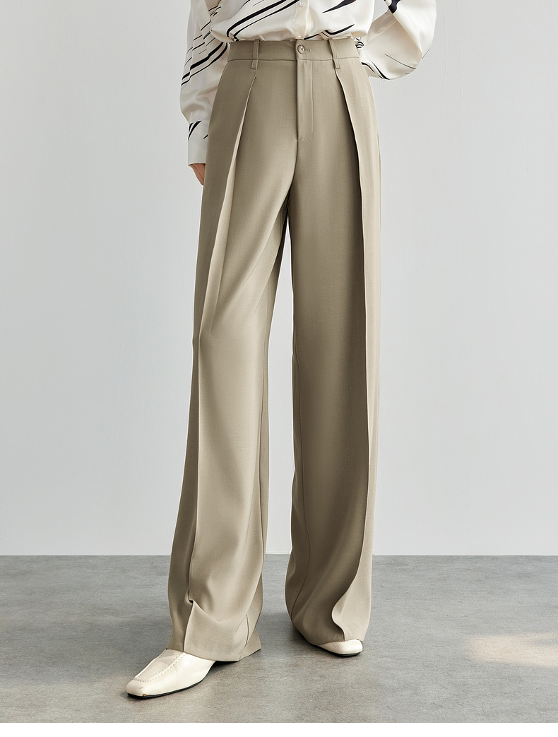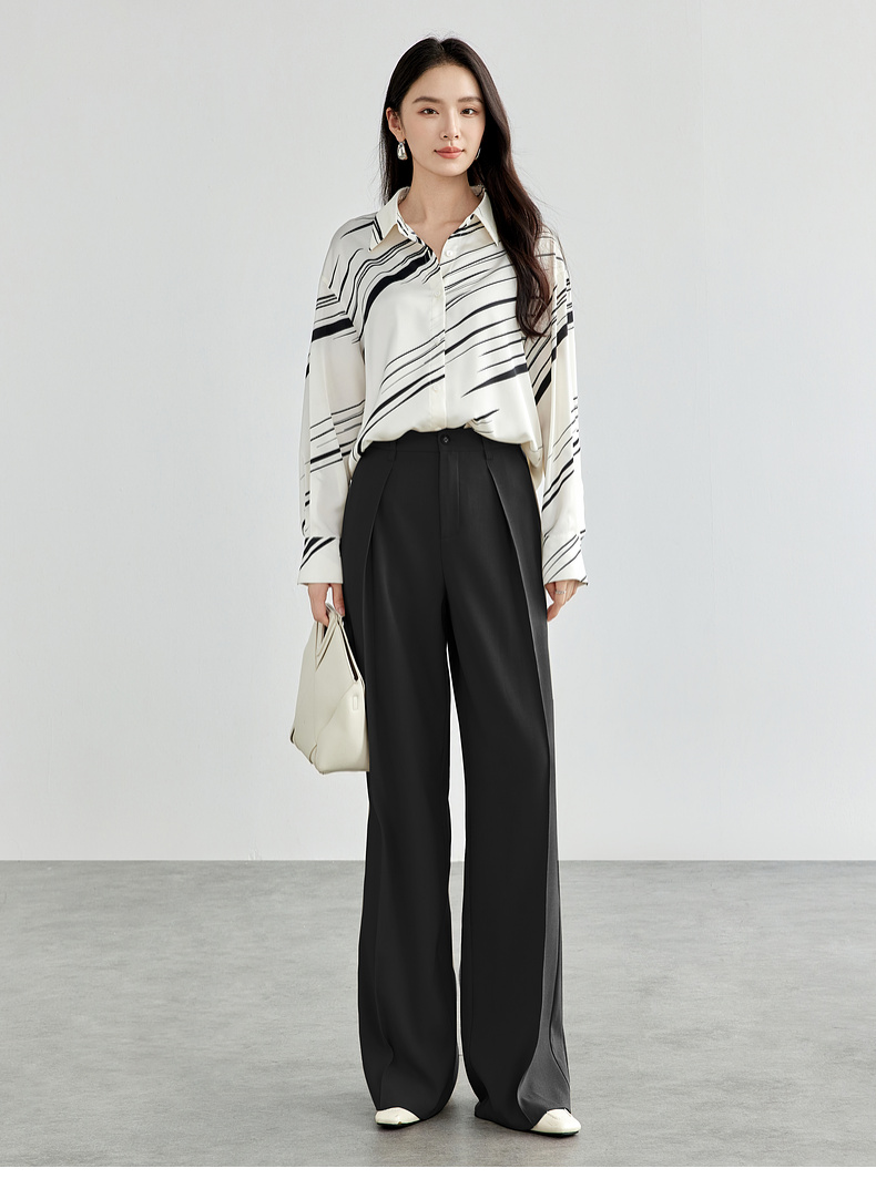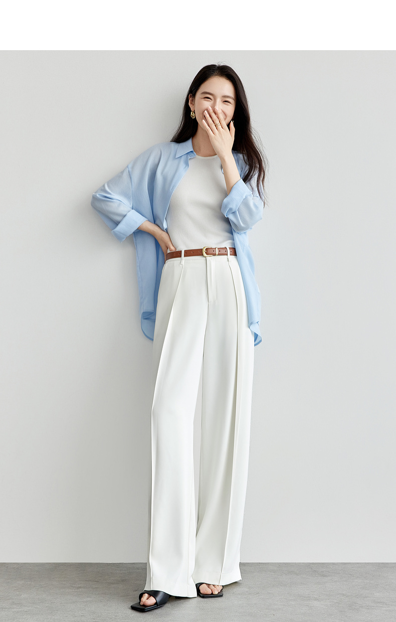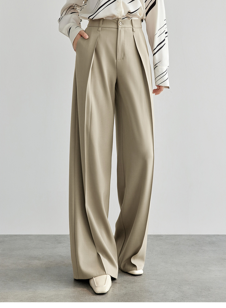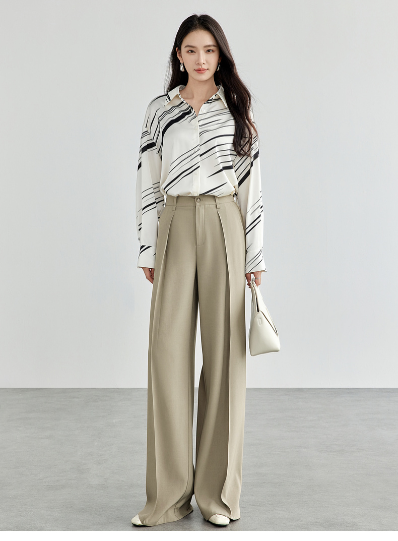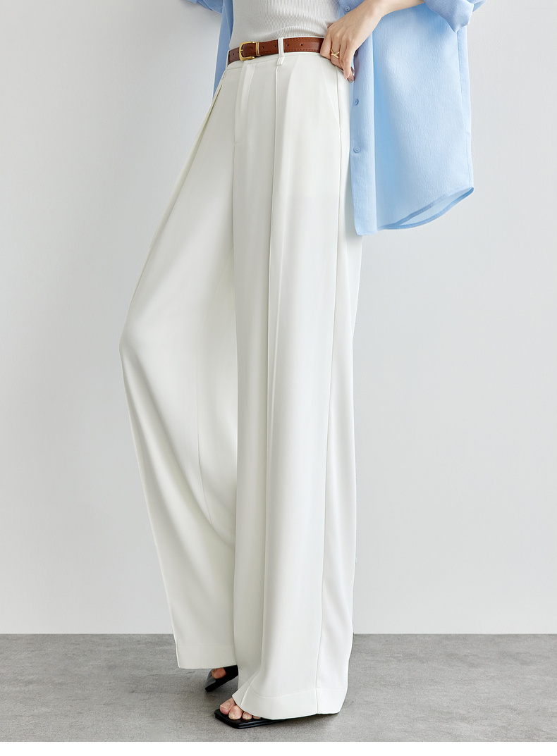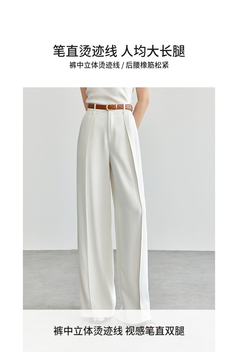 【内购】气质通勤橡筋后腰裤中烫迹线垂感显瘦宽松高腰阔腿长裤-151K57704