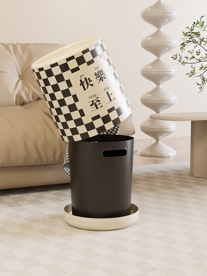 「两款可选!ins奶油风」垃圾桶颜值带盖双层卧室客厅大容量居家日用厨房餐厅用垃圾桶用品
