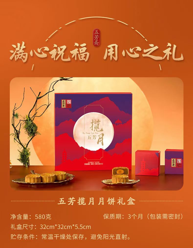 五芳斋揽月月饼礼盒【9饼9味580g】广式月饼中秋节送礼