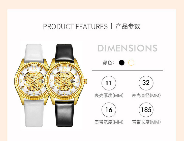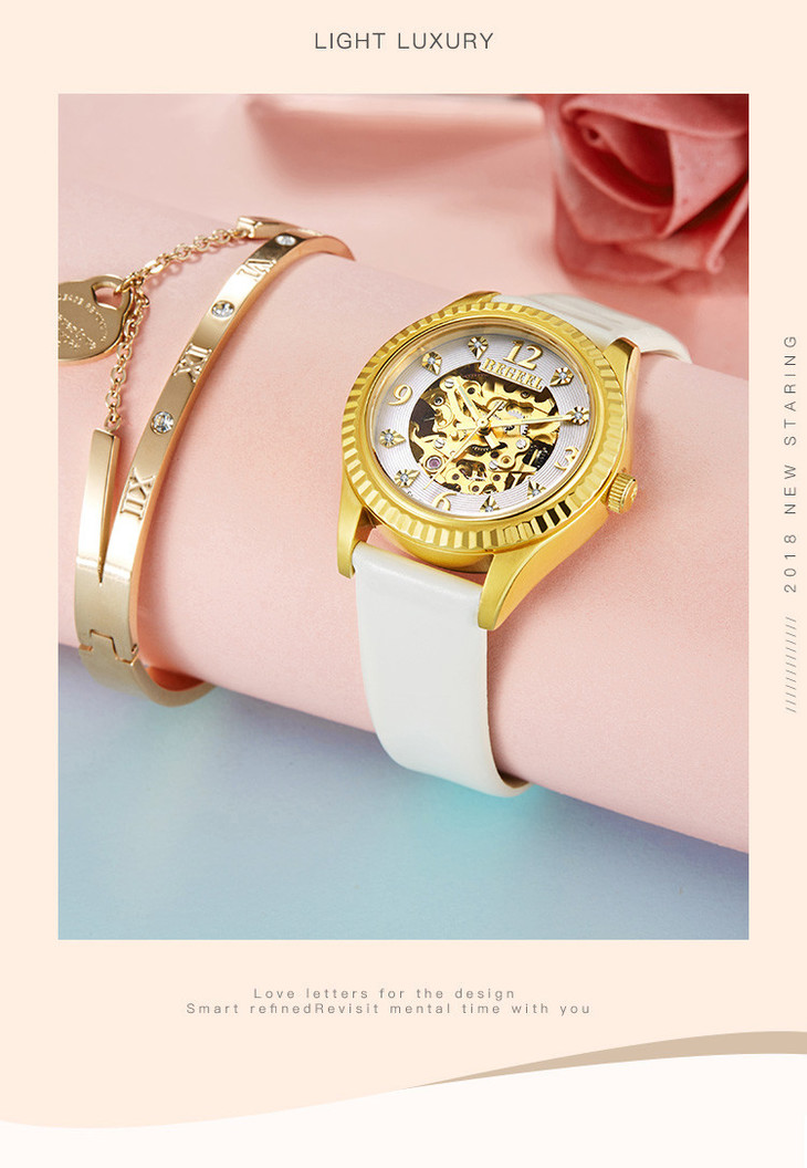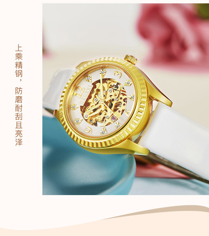 【授权产品】 2019新款送礼女表网红手表钻石镂空机械女表进口机芯女士手表