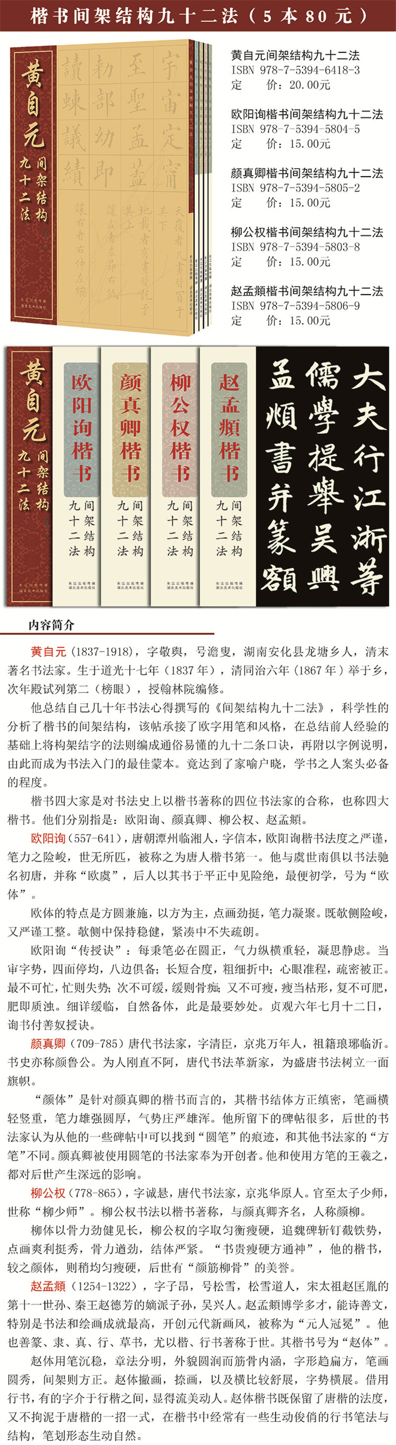 | 图书名称: | 楷书间架结构九十二法系列(套装共5册) |
