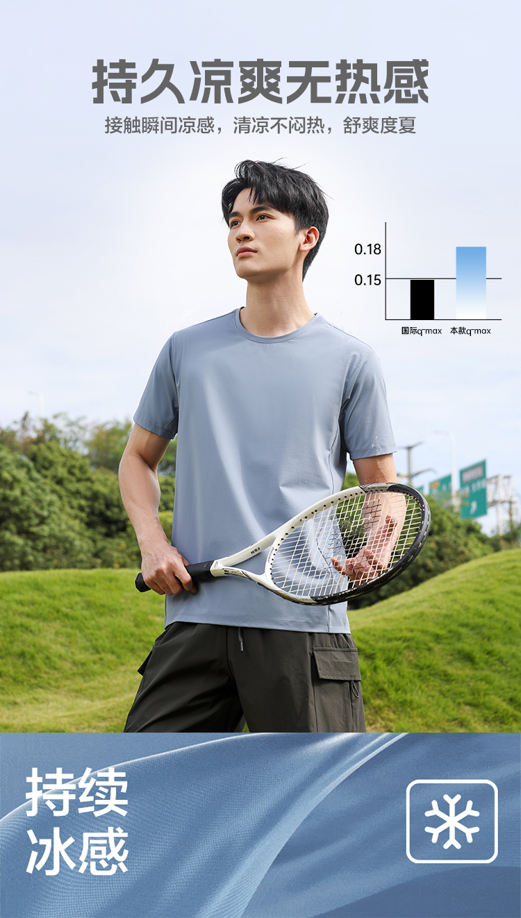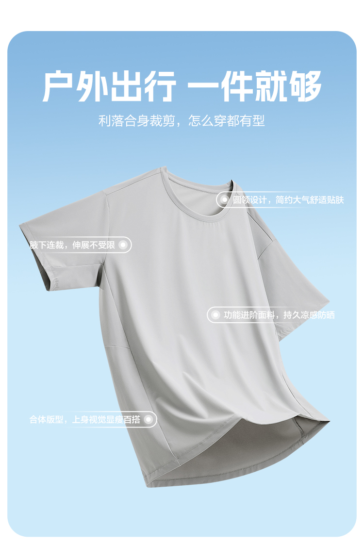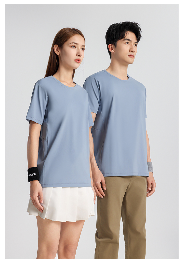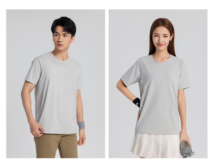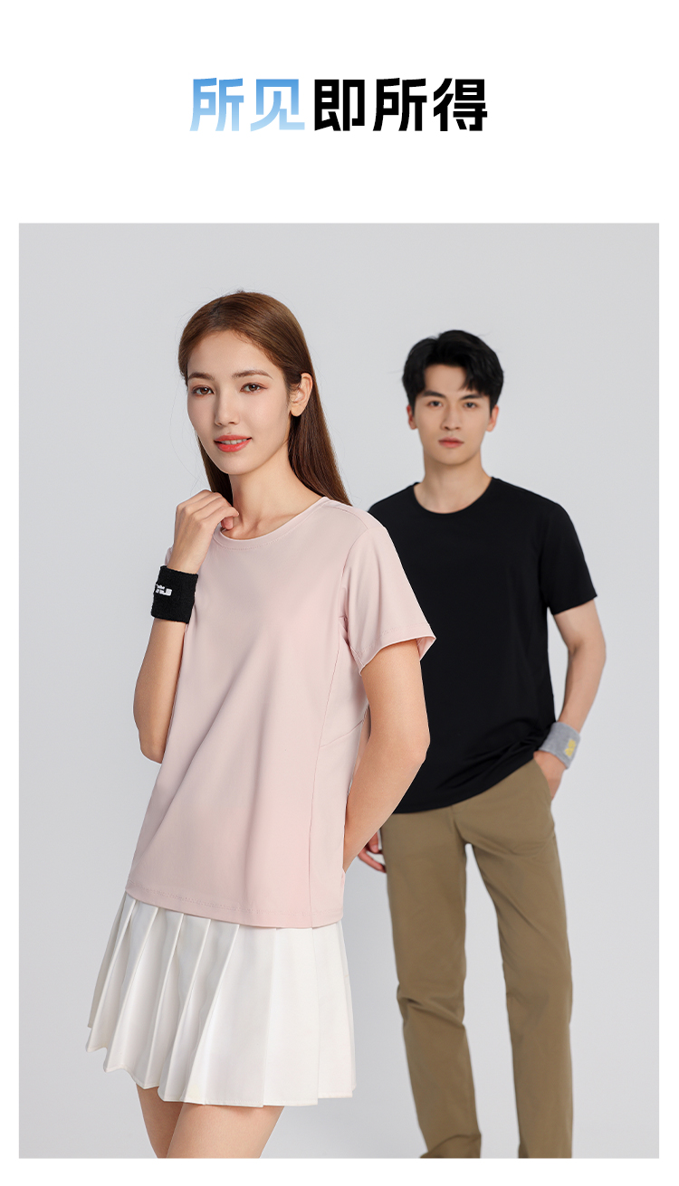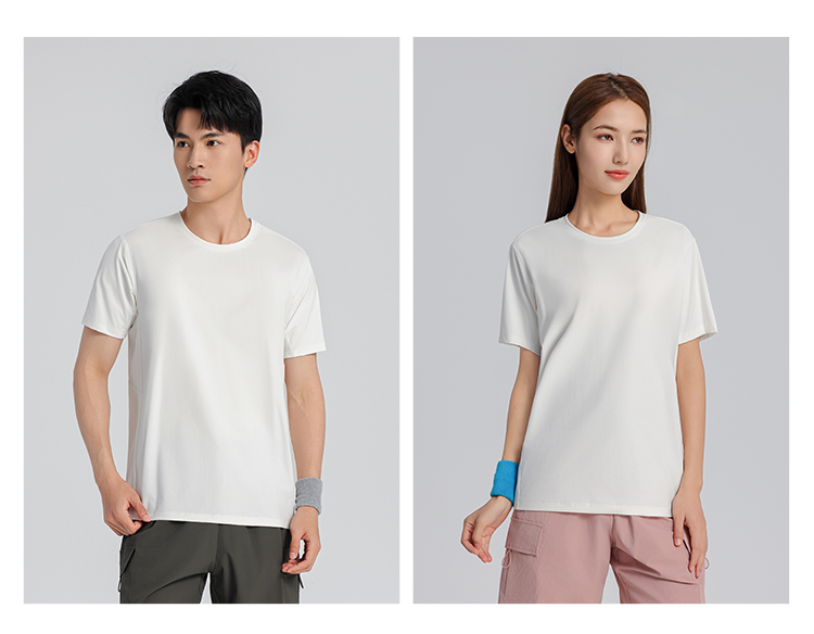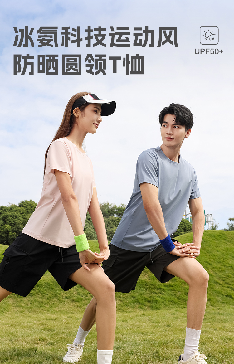 【实付满399送保温杯】【冰氨凉感防晒运动短袖T恤】男女款圆领短袖T恤弹力休闲半袖上衣TT504