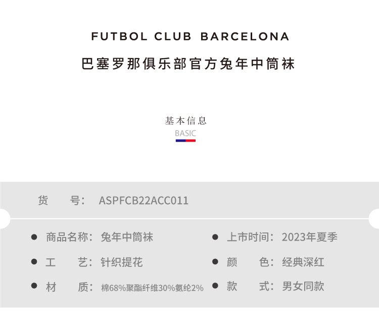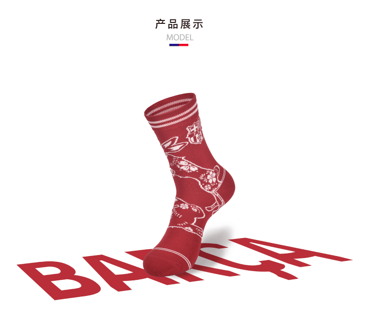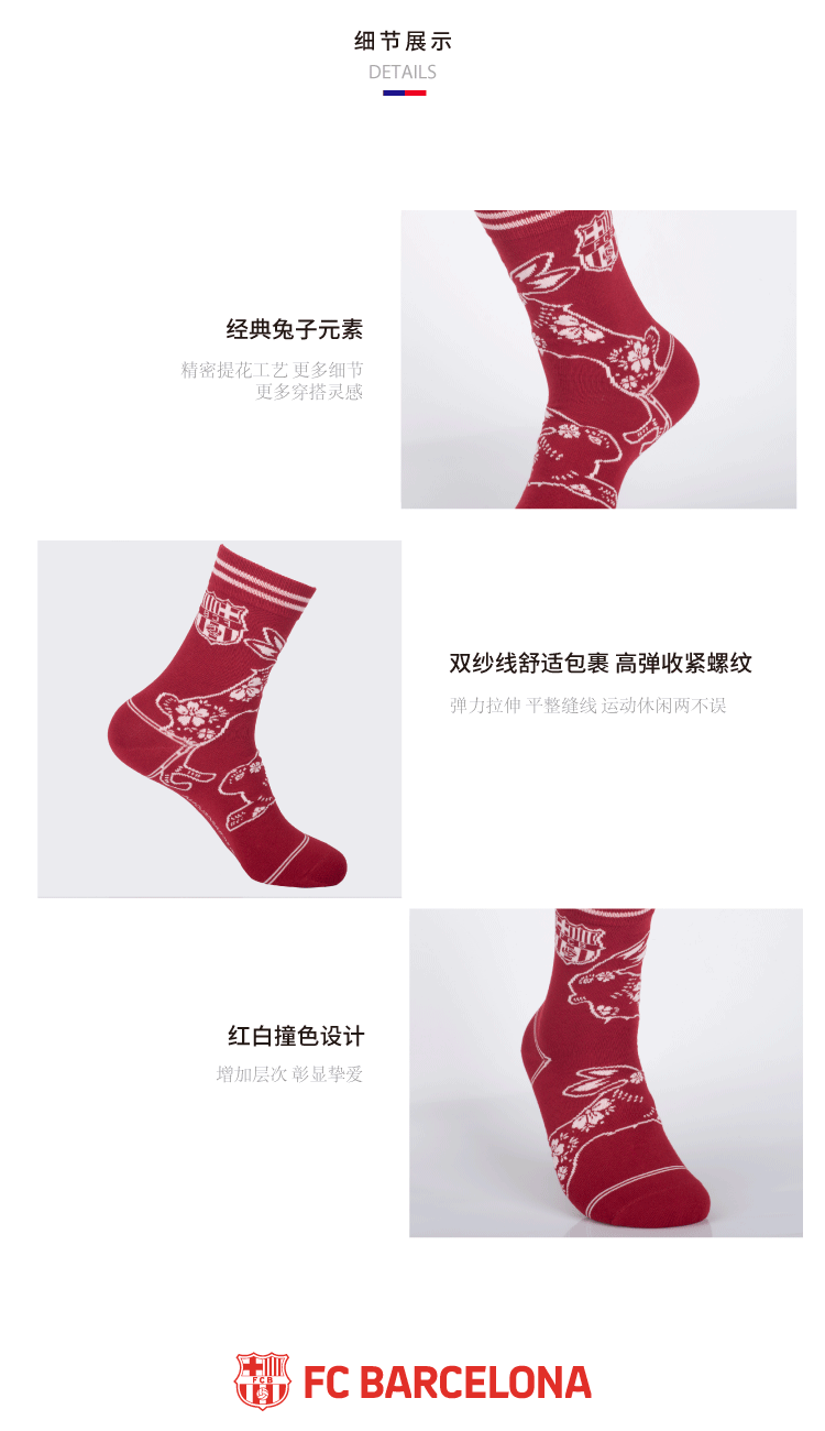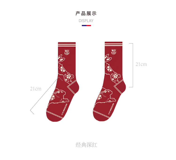 巴塞罗那俱乐部官方商品|巴萨兔年深红针织中筒袜男女同款足球迷
