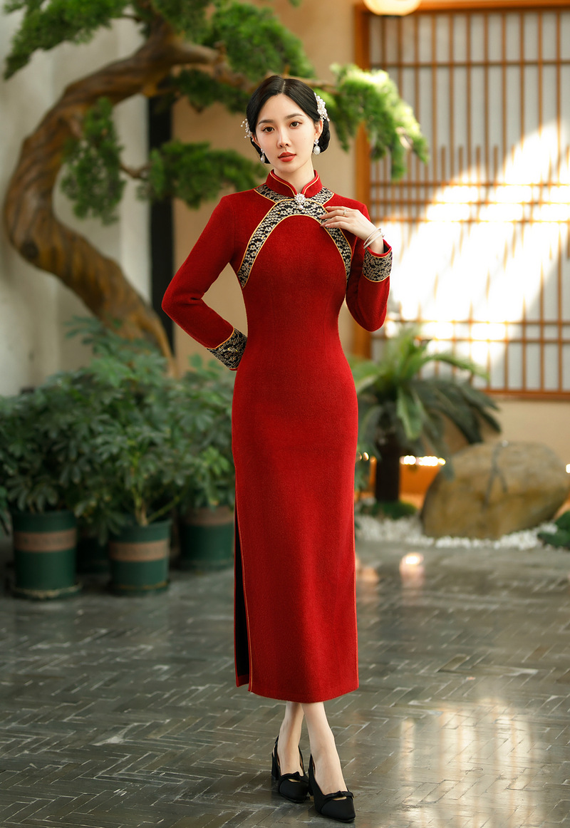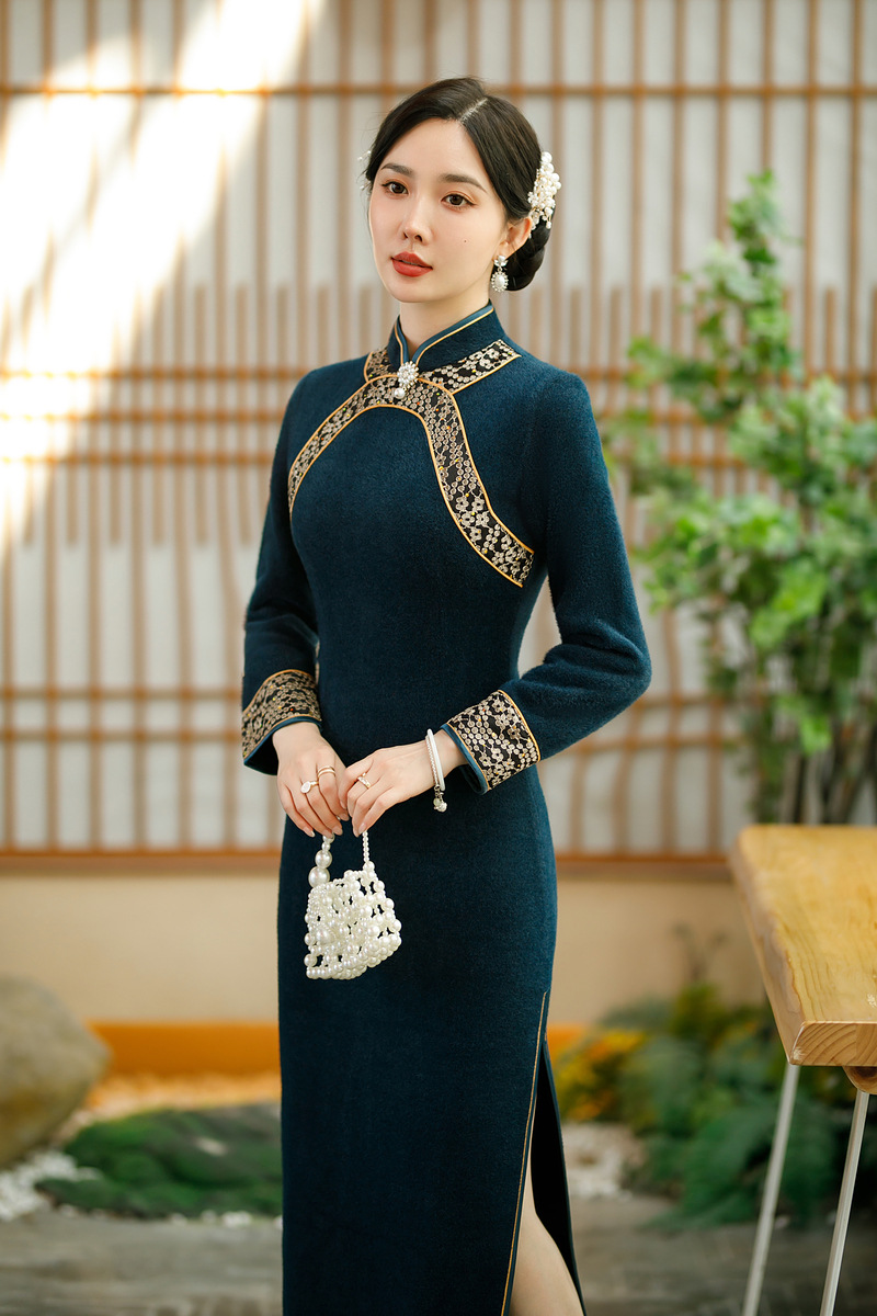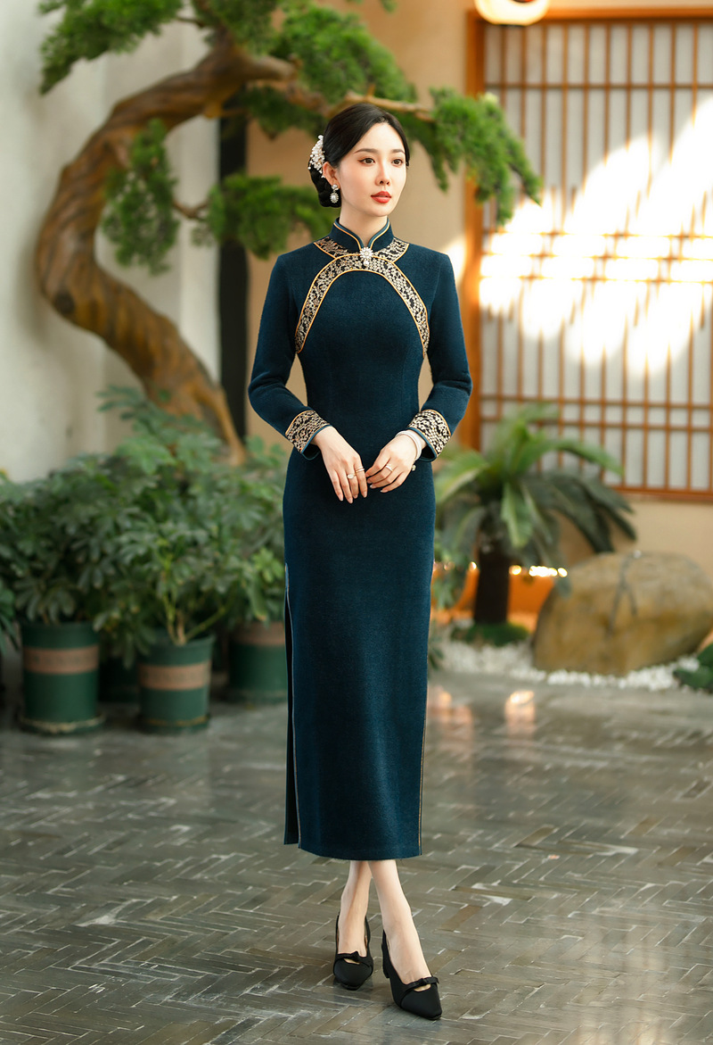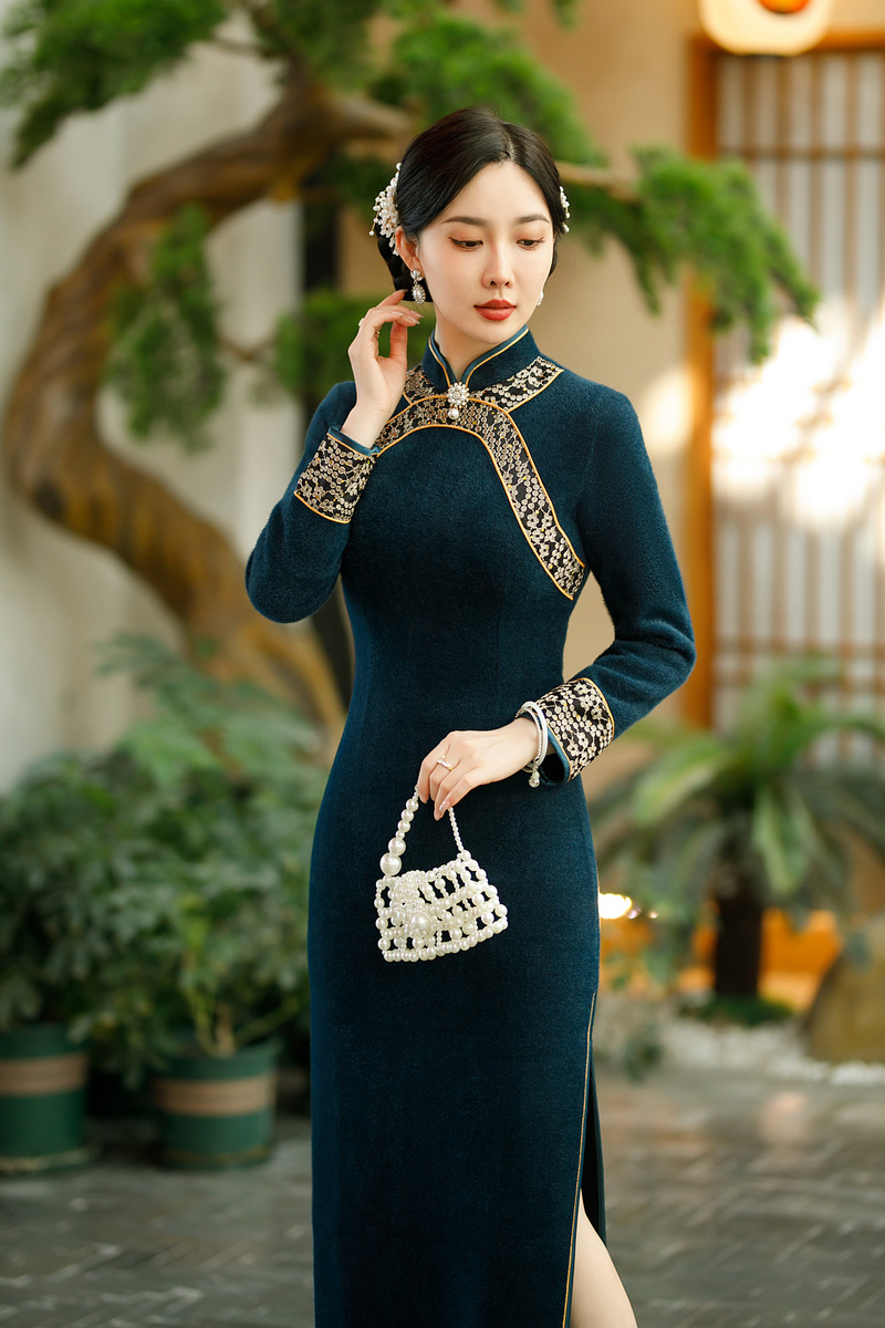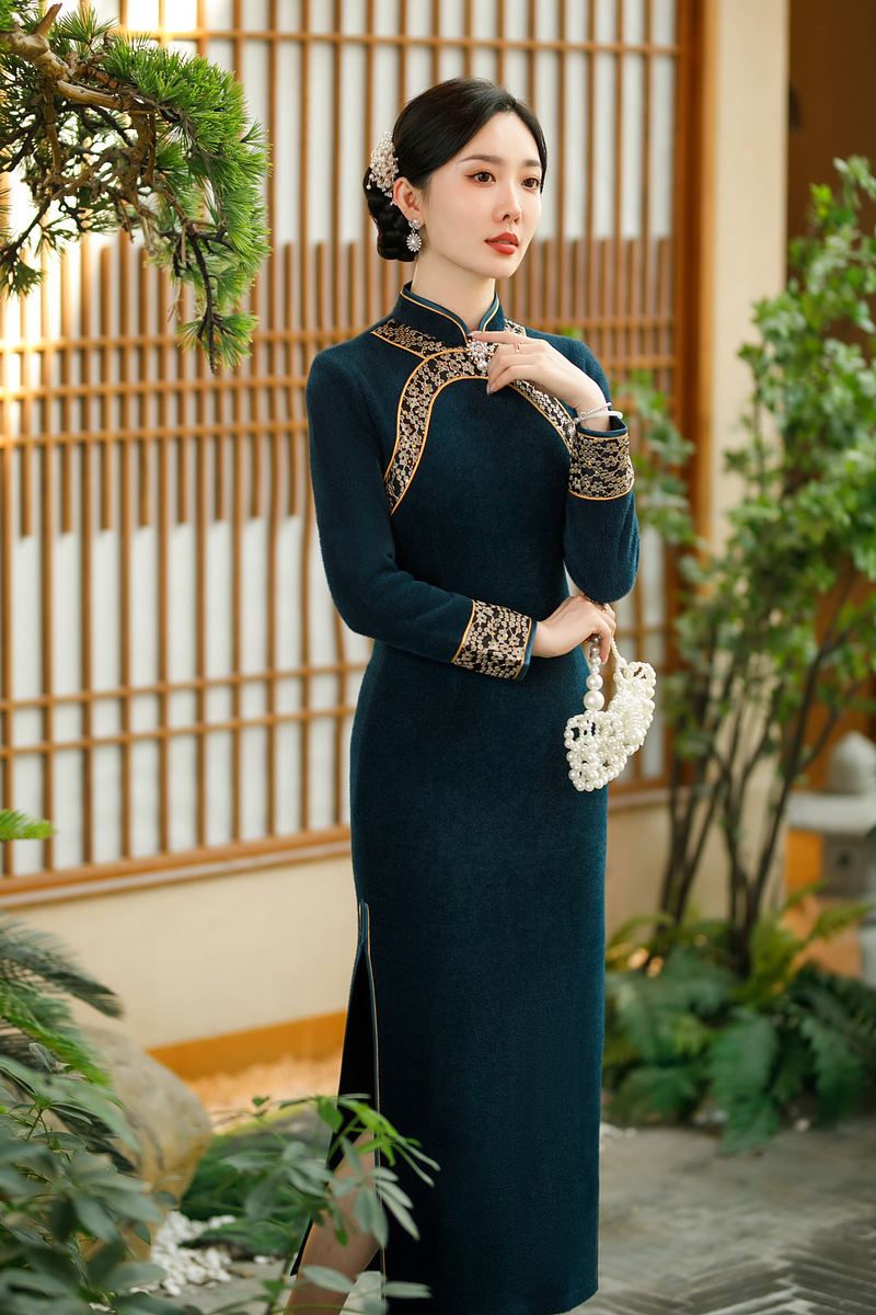 2023秋冬老上海复古民族风加绒旗袍GX-801019