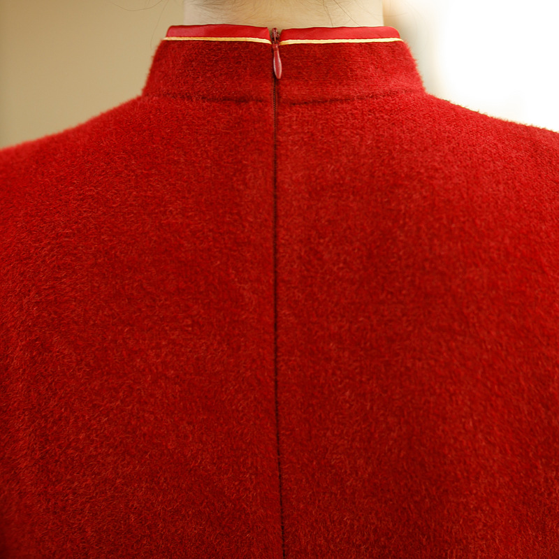 酒红色高贵旗袍高端丝绒秋冬新款复古气质唐装宴会SYG-697