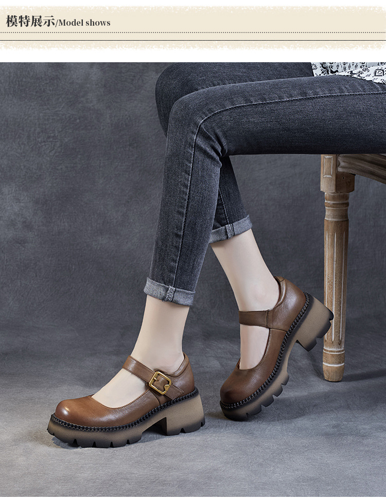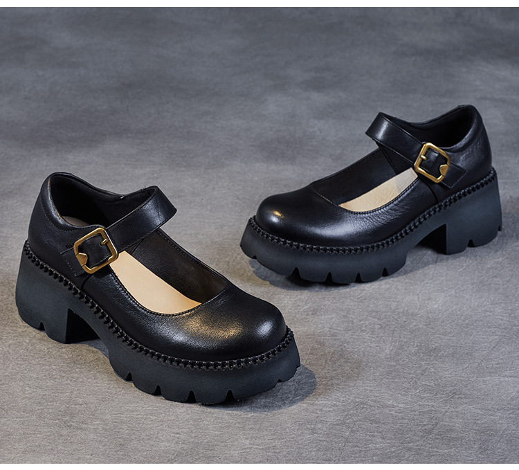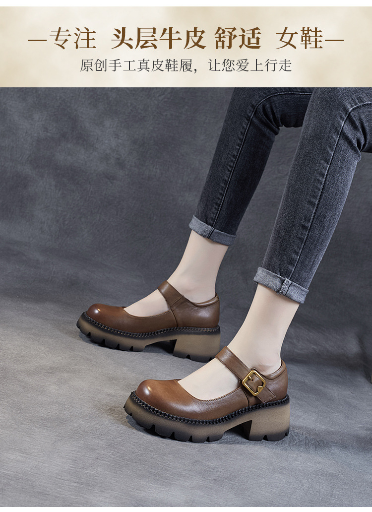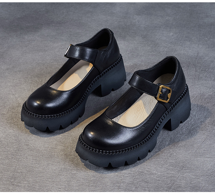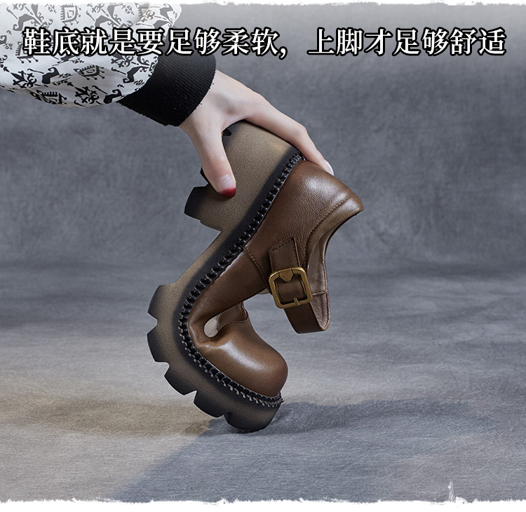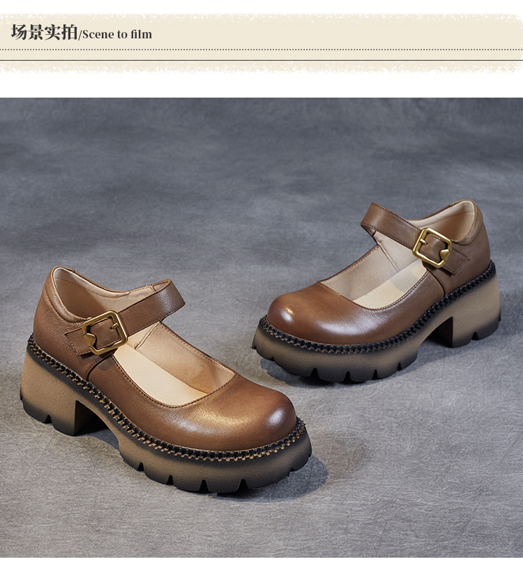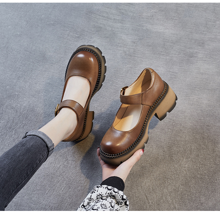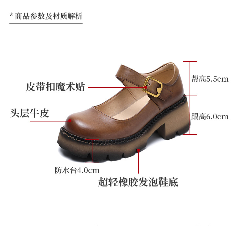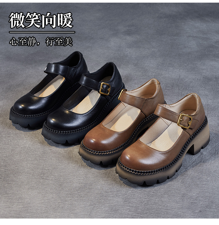 厚底小皮鞋,皮带扣单鞋真皮日系JK复古粗跟浅口玛丽珍鞋ZM22087