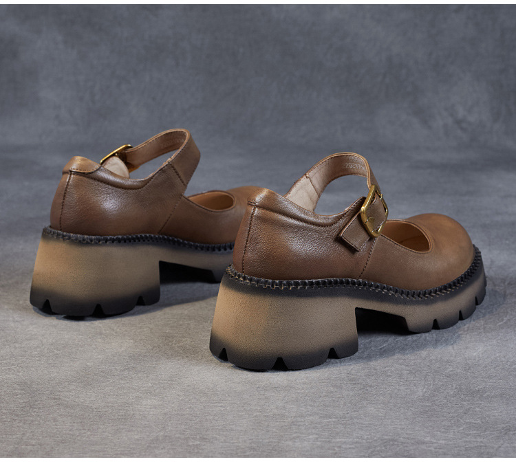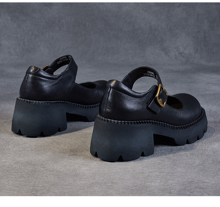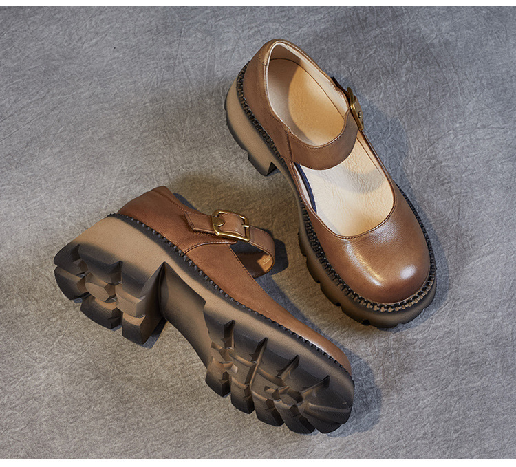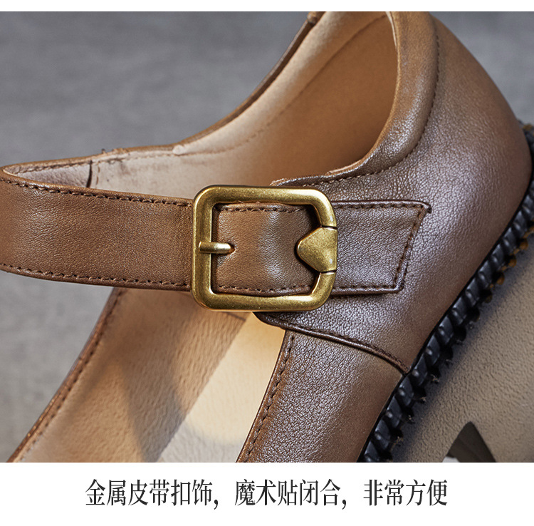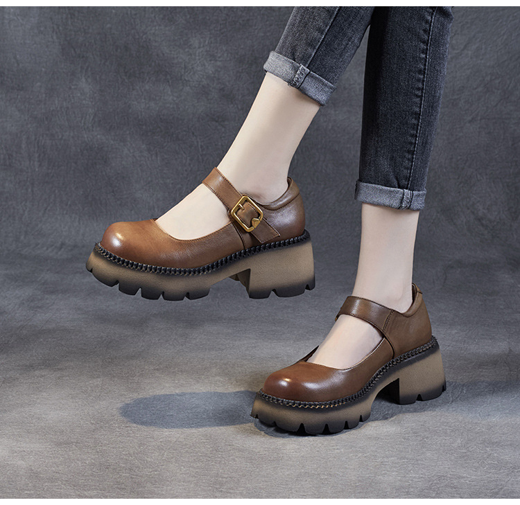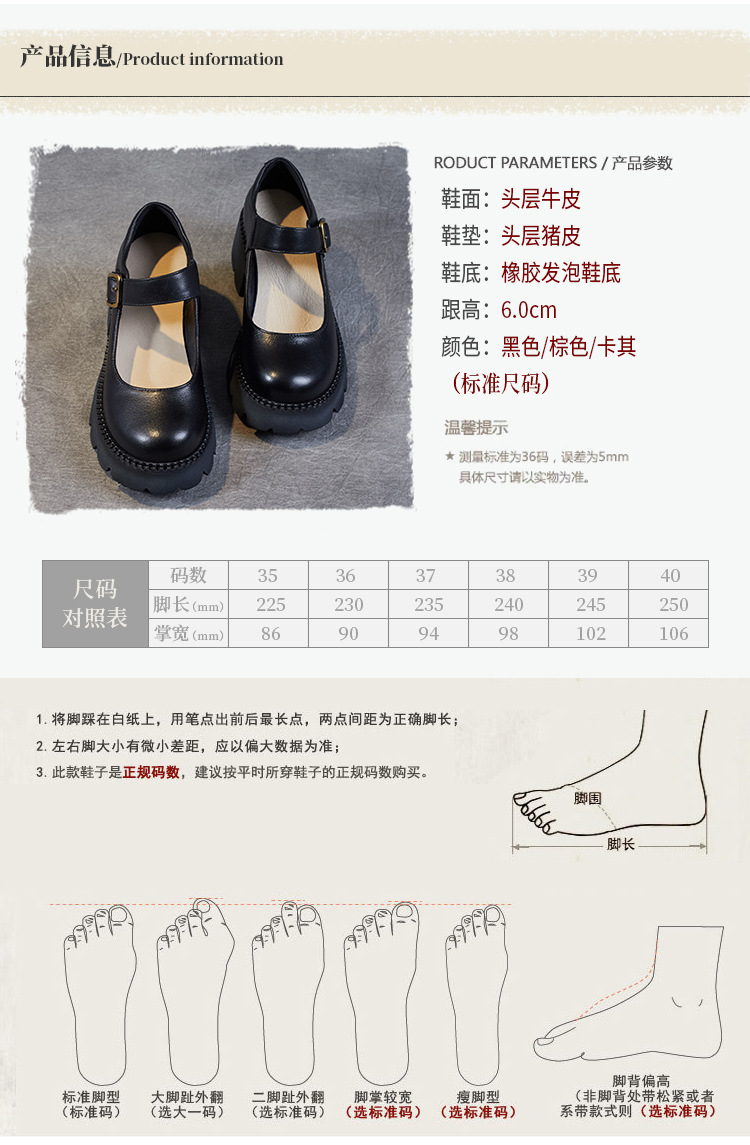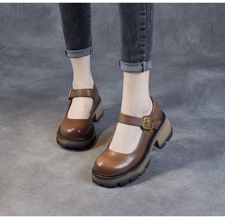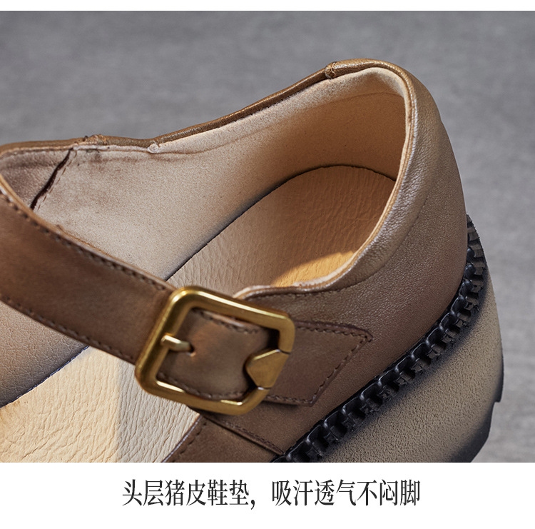 厚底小皮鞋,皮带扣单鞋真皮日系JK复古粗跟浅口玛丽珍鞋ZM22087