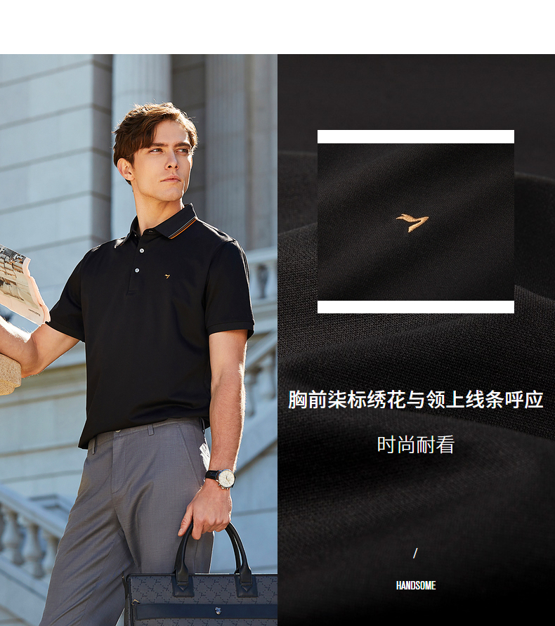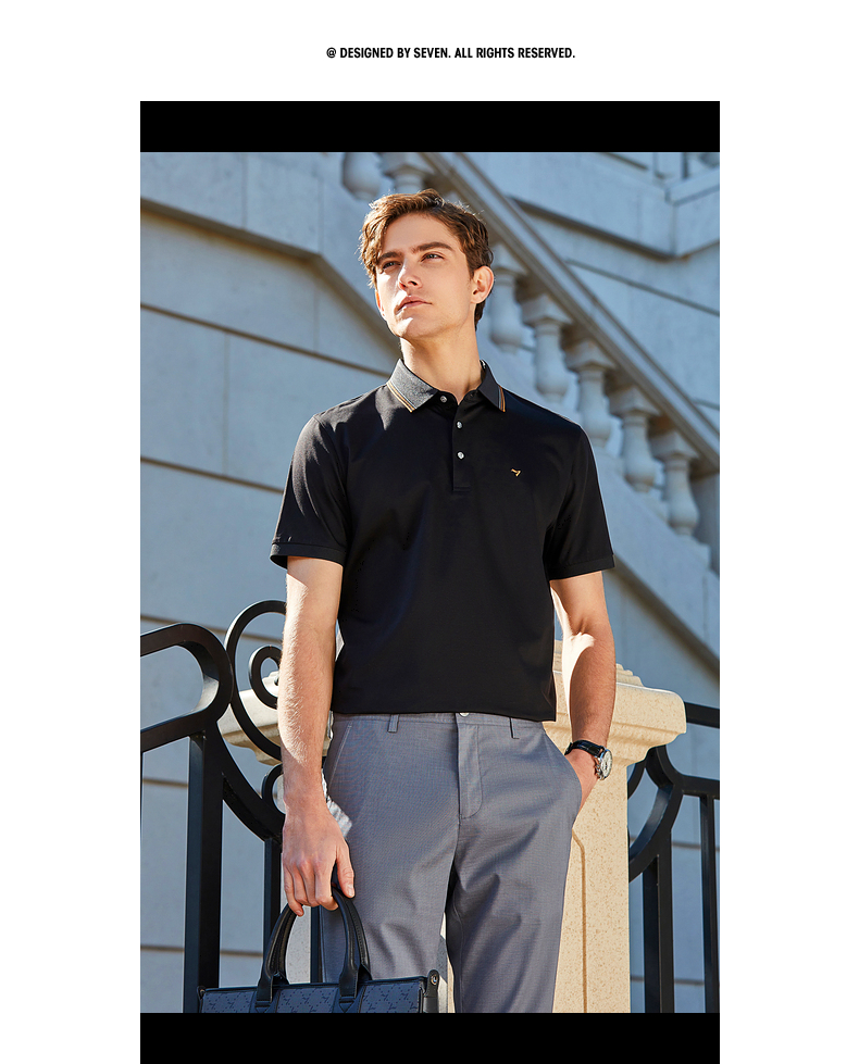【含桑蚕丝】柒牌短袖男polo衫夏季凉爽抗菌休闲商务青年翻领T恤 124T70560
