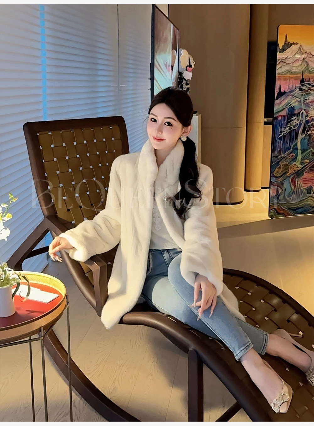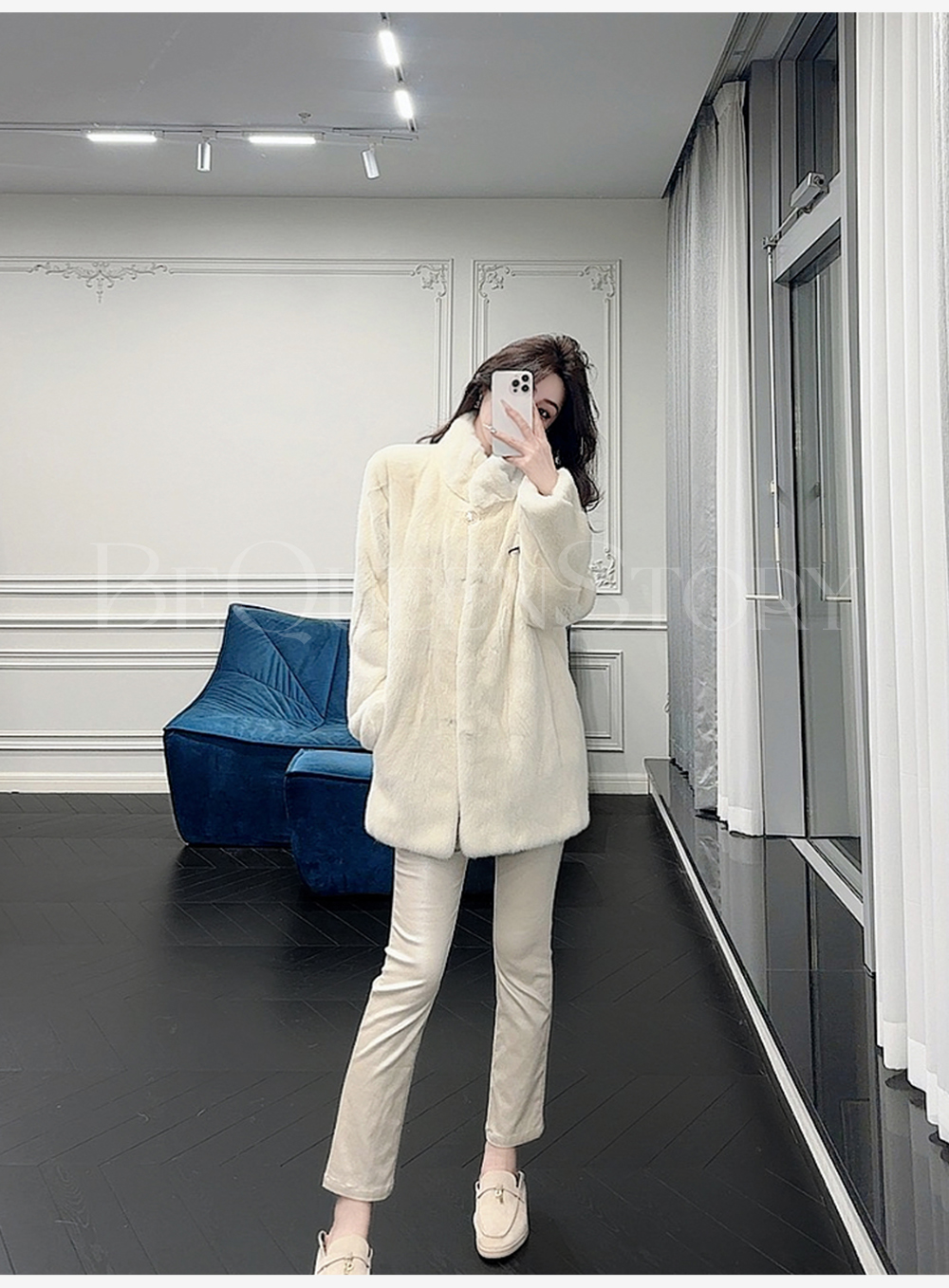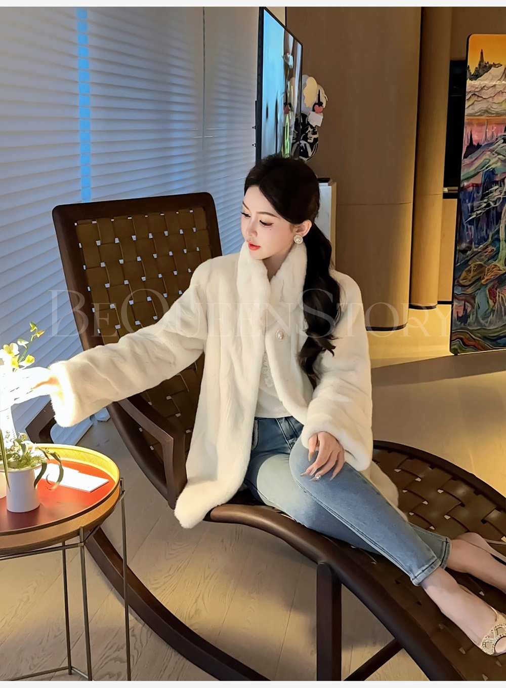 余潇潇红人上新【满级白月光】高级定染皇冠级水貂立领草草外套保暖