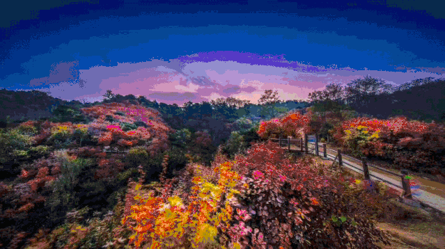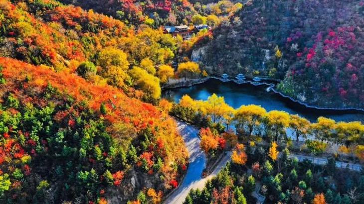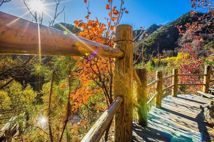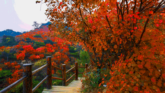 今年,九如山大面积补种了更多黄栌、五角枫等观赏树种。不想爬山?那就躺入房间看山赏枫~