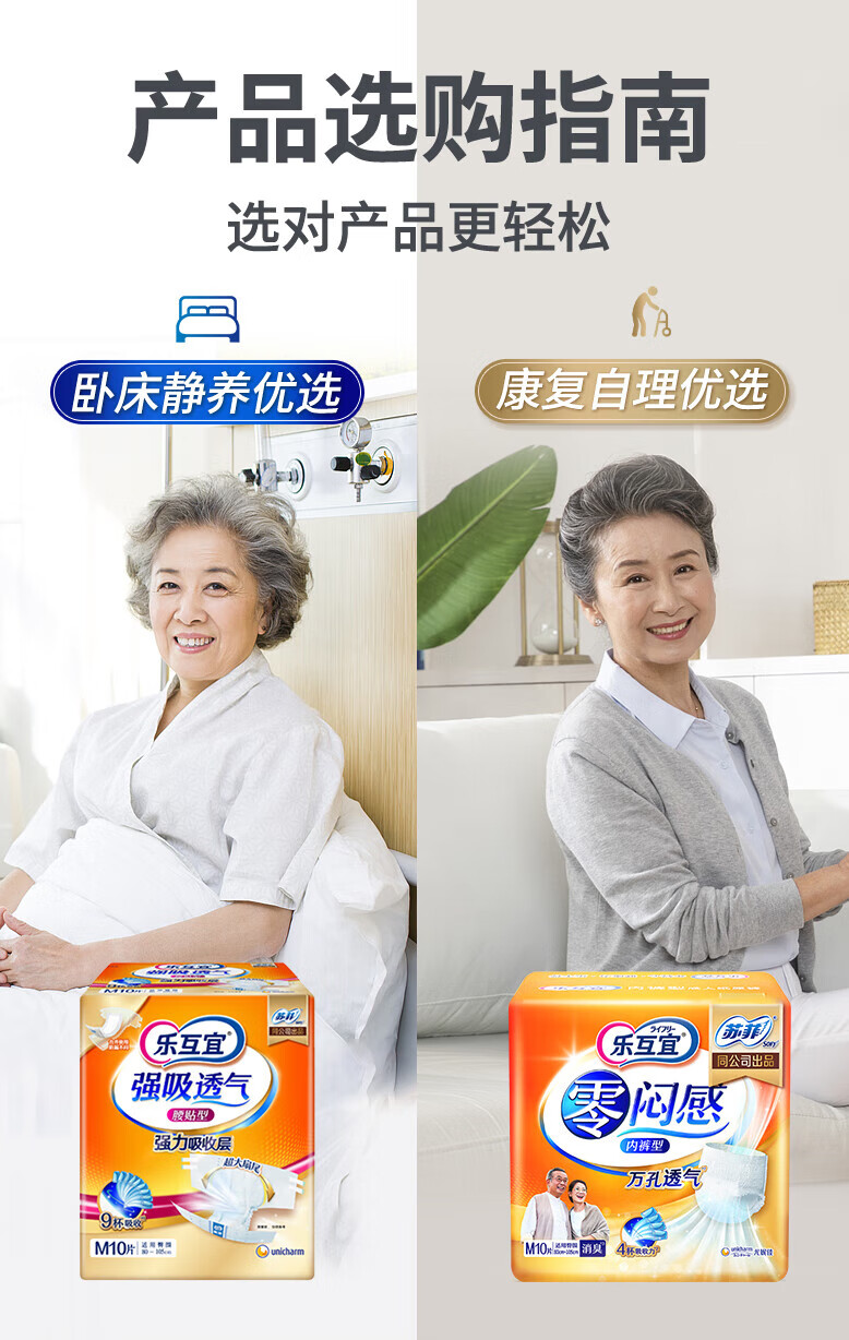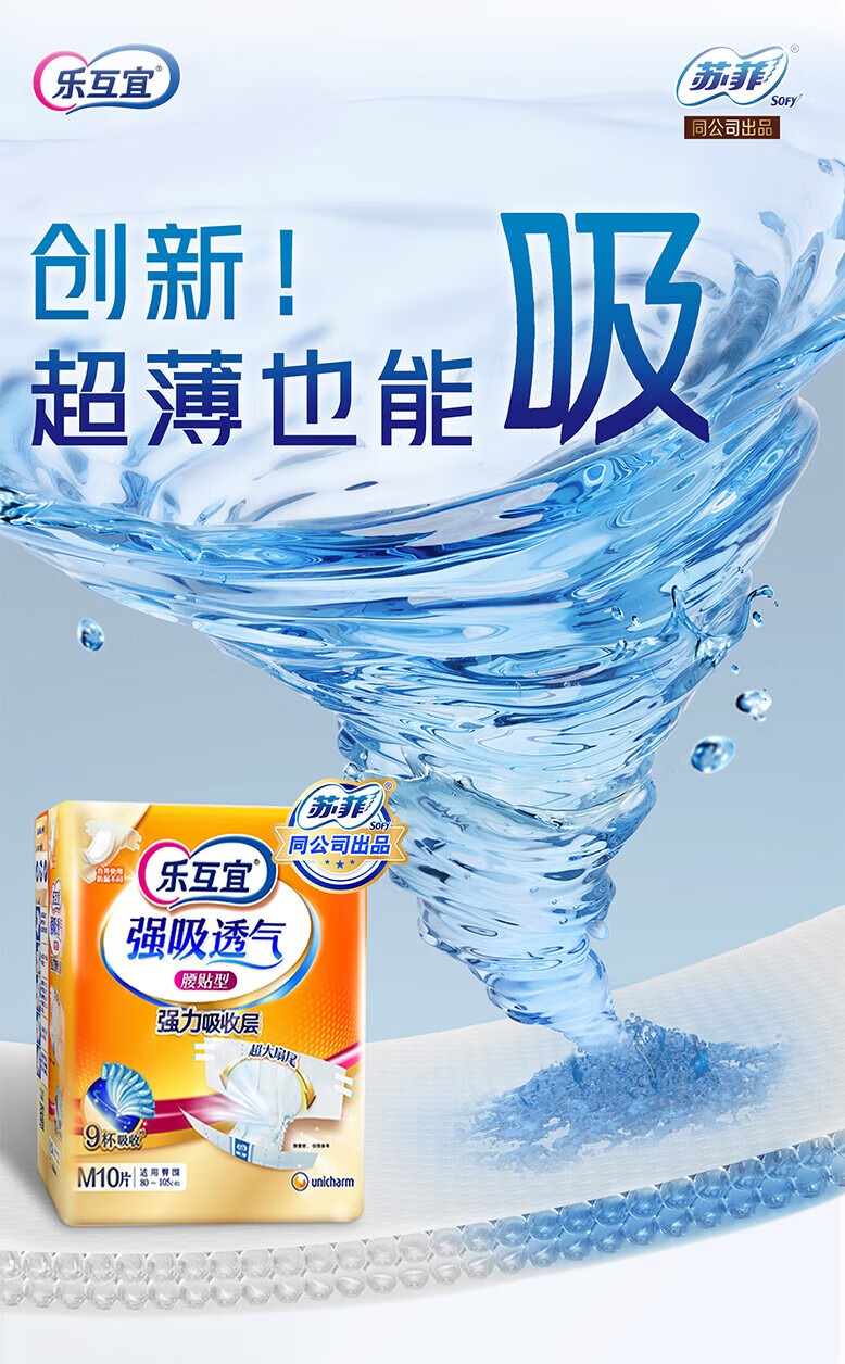乐互宜腰贴型成人纸尿裤M 10片(薄型)