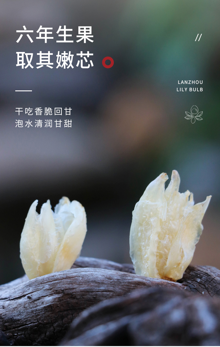 北纬纯净食品|38°兰州百合芯 精选六年生百合嫩芯